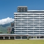 Although the site was limited to its narrow shape, the design of the circular layout infused unique and exciting features into the spatial experience, giving it forest-like sceneries and fairy tale features. The arc-like skywalk shuttle through the shared spaces of this building, telling stories through art installations. The arc-shaped flower beds of greyish stones represent humble hosts bowing as they welcome guests into their neighbourhood. Supplemented by evergreen shrubs, light and shadow intertwine innocently on the dark tone stone pavement.