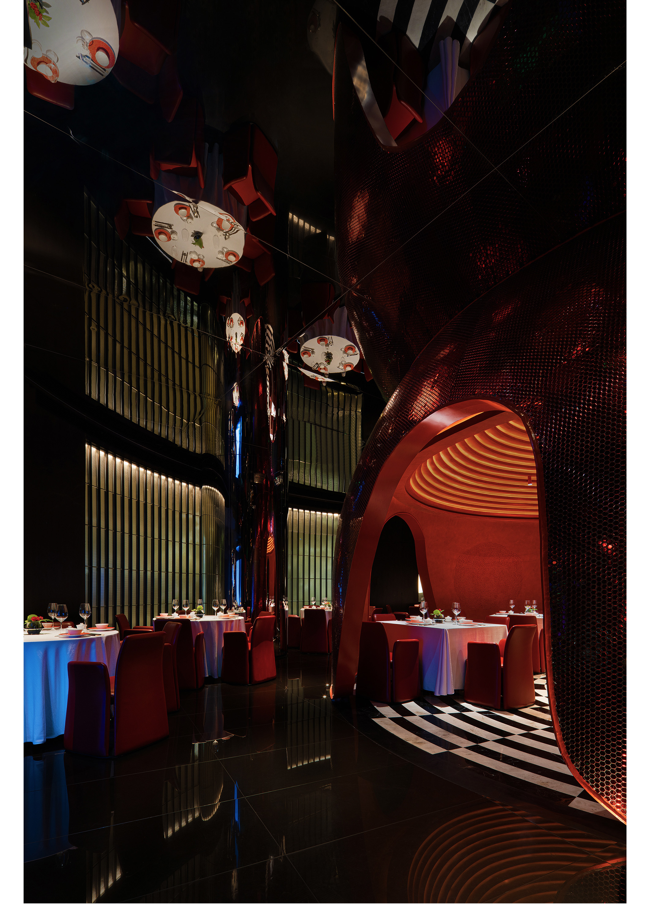 This project has been praised for its masterful fusion of Eastern and Western aesthetics, creating a space that harmonizes rational structure with deep cultural perception. By blending the evolving critical spirit of Western art with the timeless elegance of Eastern traditions, the design offers a dynamic yet balanced experience. Like a kaleidoscope of cultural influences, it delivers unexpected visual and spatial surprises, all while centering on the essence of culinary artistry—where true meaning is ultimately found.