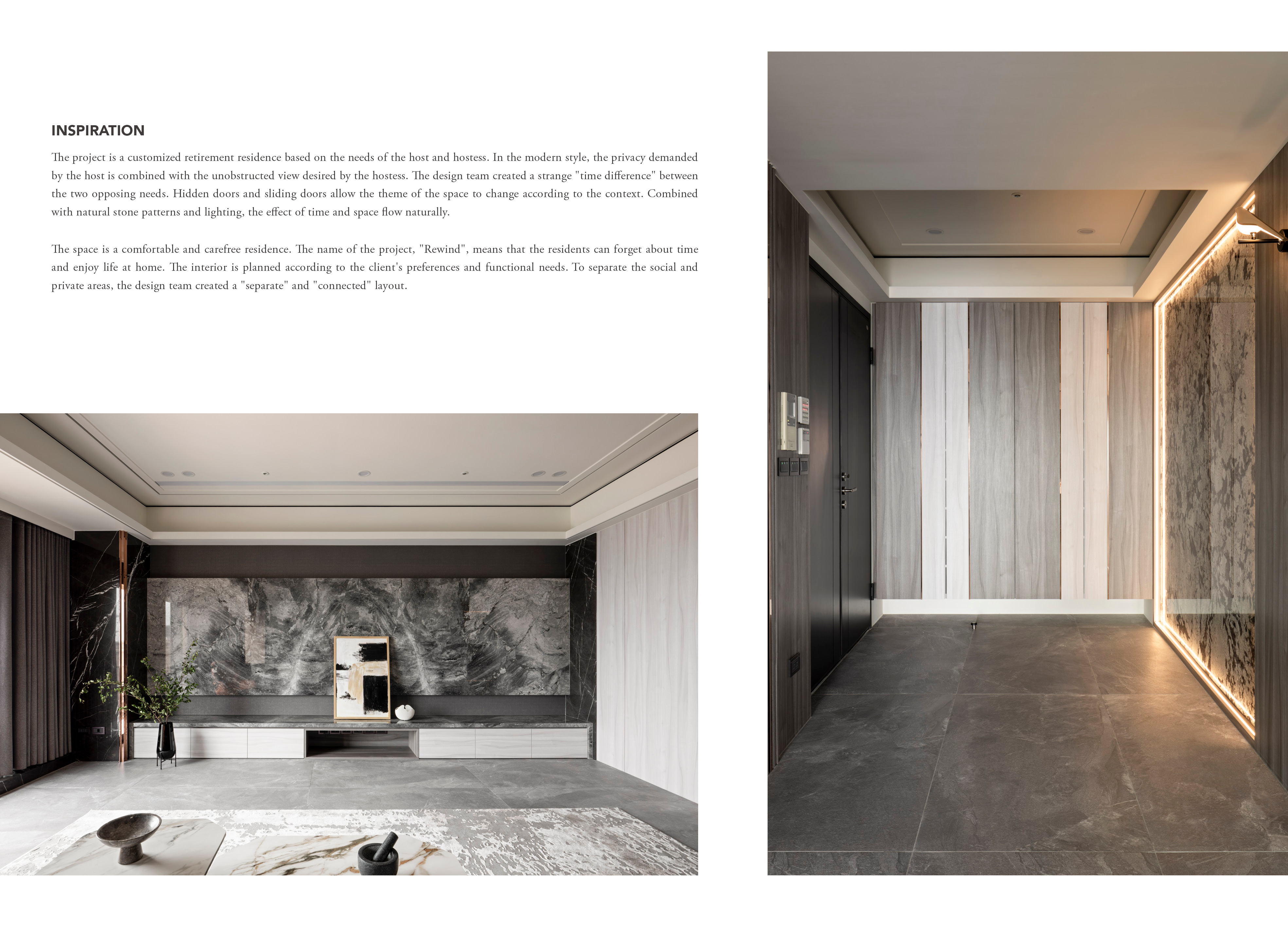 "Rewind", means that the residents can forget about time and enjoy life at home. Created a "separate" and "connected" layout to separate the social and private areas.