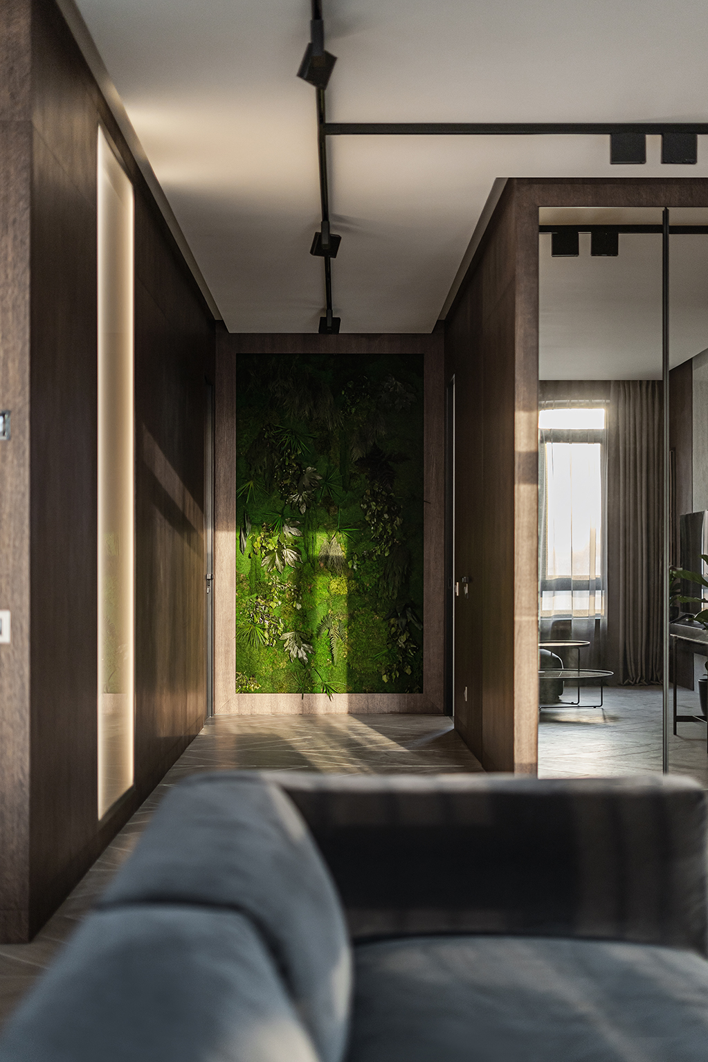 Зелена стіна додає свіжості та відчуття спокою. Такий “живий” елемент є сполучною ланкою між сучасними концепціями комфорту та природою.
