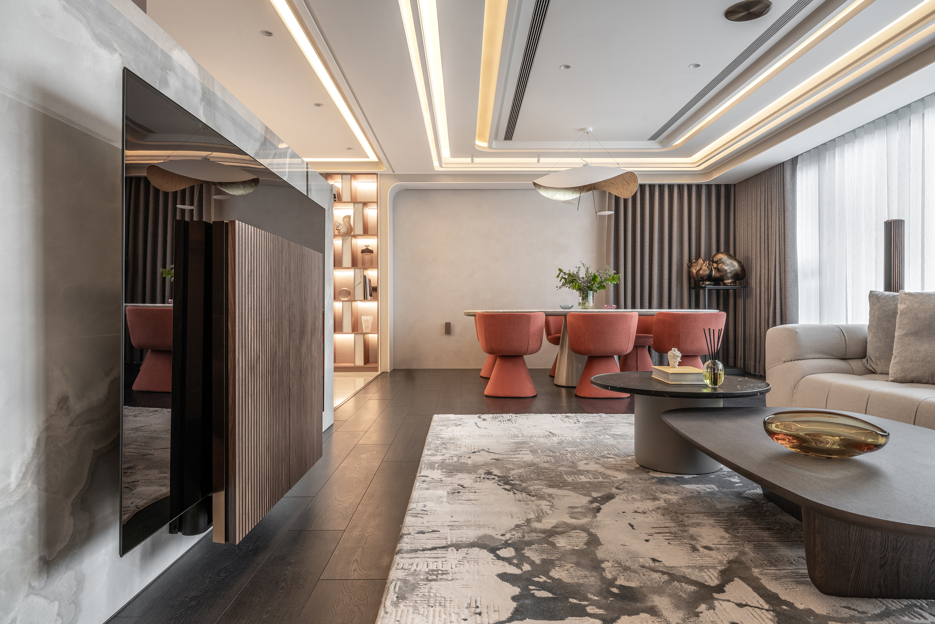 The foundation is like a canvas. We kept plenty of blanks and decorated the white background with balmy furnishing. In light and shadow, each element presented distinctive expressions. Refined linear features achieve striking visual gradations, and different textures define varied functional spaces. Moreover, high-quality fragrance brings double sensational immersion, gently embracing life within details.
