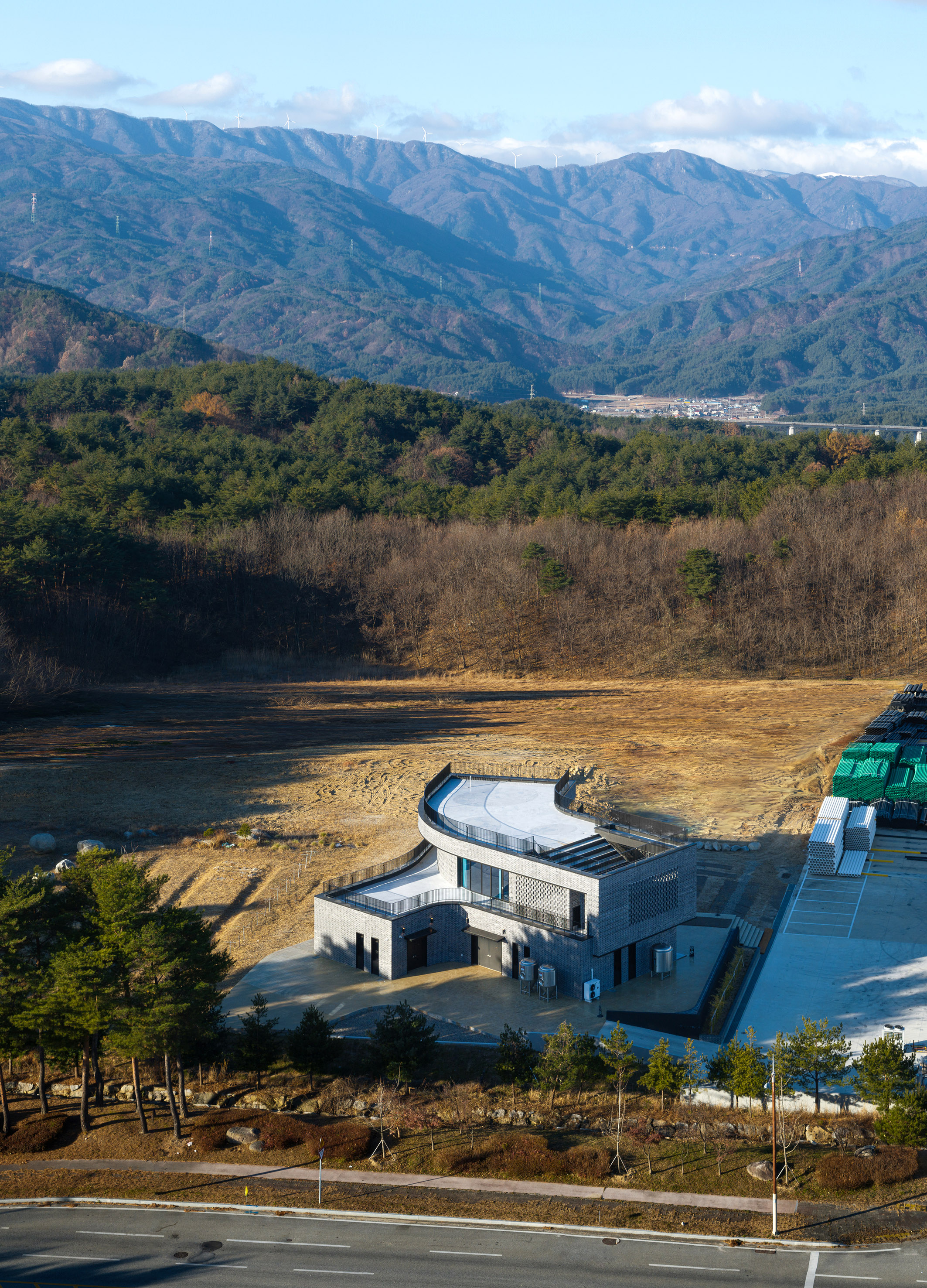 소나무숲으로 둘러싸인 초원에 자리한 건물은 외향적 매싱을 통해 적극적인 외부공간 연결을 만들어낸다. 세 방향으로 뻗은 매싱 사이공간을 활용하며, 프로그램 윙들은 외부로 연장되어 자연과 함께하는 외향적 공간들을 제공한다. 또한, 건물 외관을 따라 회전하는 외부동선은 모든 층을 연결하며 파노라마 자연전망의 멀티테라스 공간경험을 제공한다.