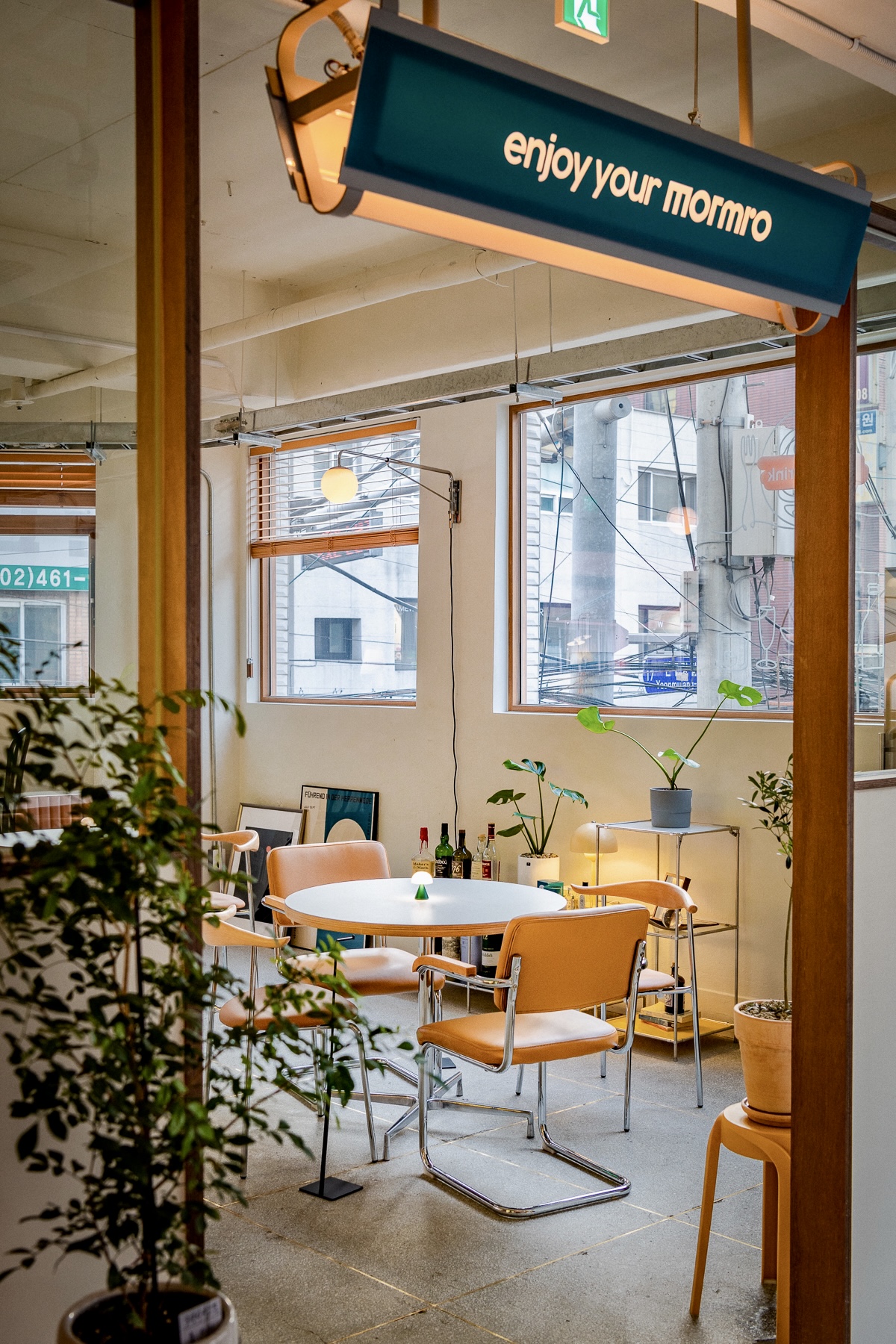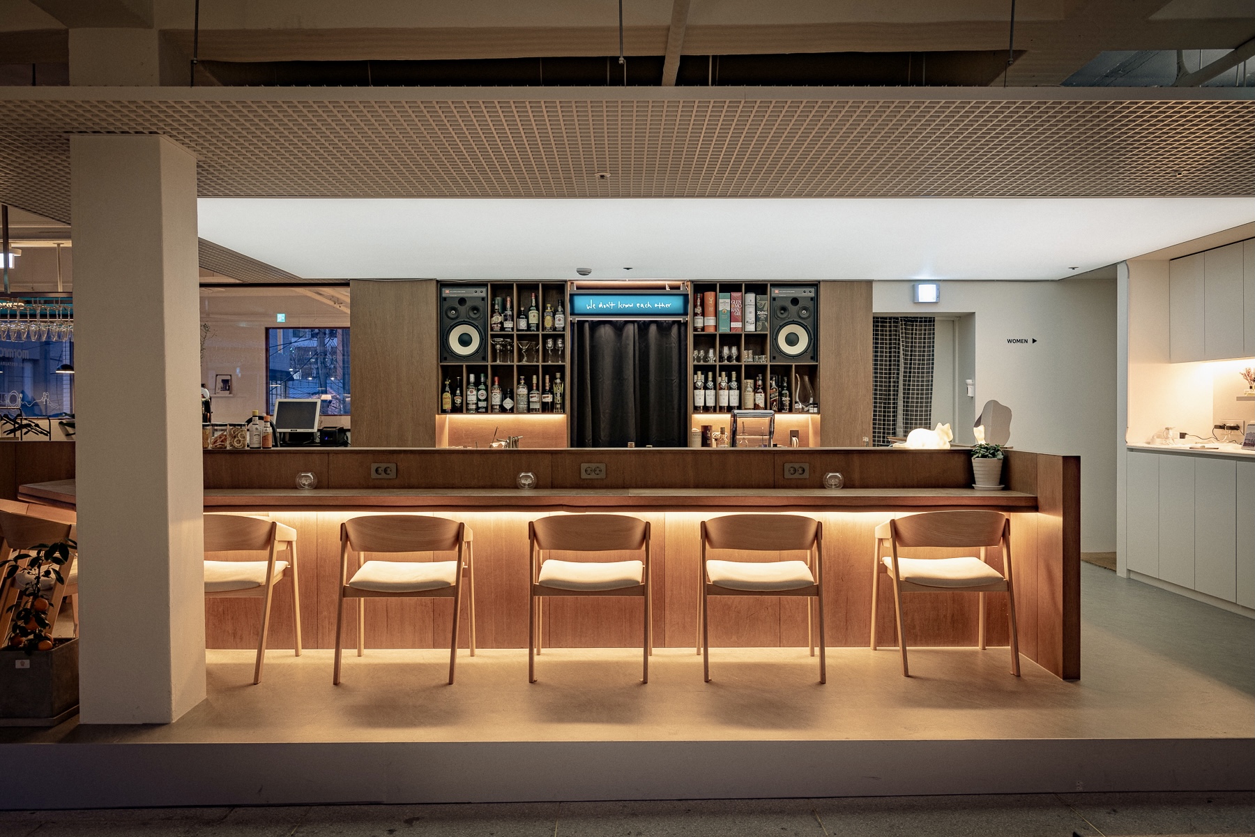 “Mormro” means “Because we don’t know each other well yet.” In a city of anonymity, this restaurant offers a calm space for meaningful connection. Located in Seongsu-dong, it begins with a soothing atmosphere—dim lighting and soft music. The cozy waiting area feels like a friend’s library, followed by a refined bar for first introductions. Guests then transition to intimate tables for small groups and, finally, relaxed sofa seating for closer connection. By embracing gradual spatial changes, Mormro invites guests to foster personal, refreshing connections.