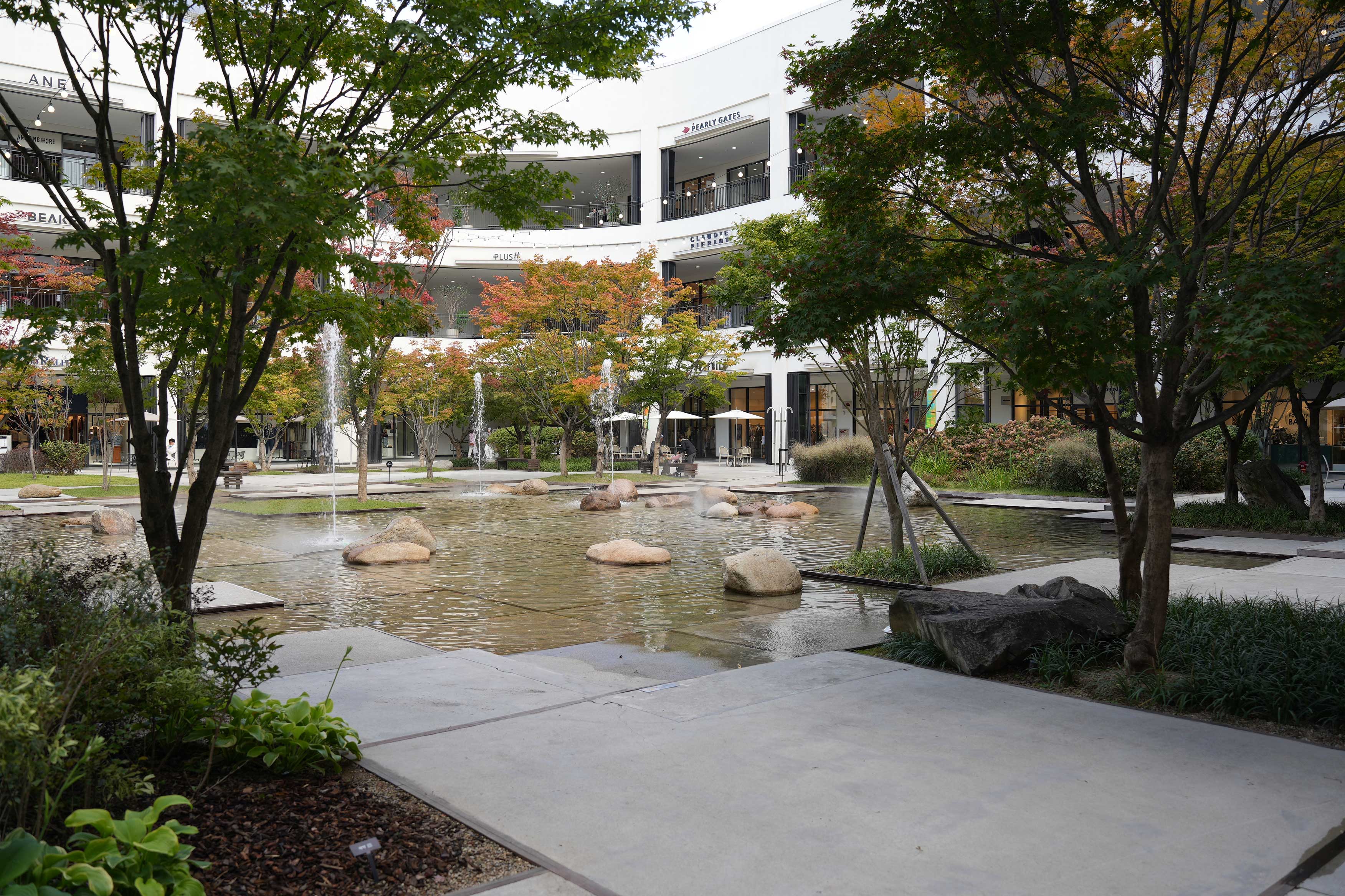 The design is inspired by traditional agricultural field patterns viewed from above, using square modules that adapt in size and shape to the plaza's functions. Each sub-shape is transformed into areas such as rest spaces, green zones, and water features. The eastern fountain plaza, where the square module drops below ground level, serves as a water feature that remains aesthetically functional even in dry winter. Meanwhile, the cube plaza, with modules that rise upwards, functions as a planter and resting area.