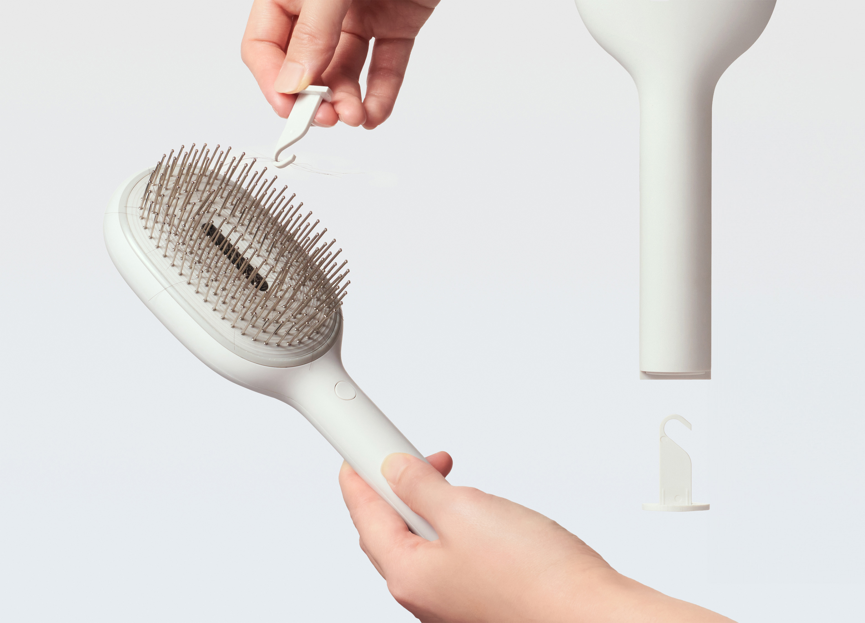 Lumion Brush is an electric brush that combines scalp massage and negative ion care in one device, designed to support easy daily scalp and hair care. Gentle vibration provides comfortable stimulation for the scalp, while negative ion emission reduces static and adds a calming feel to the hair. Its simple, ergonomic form fits naturally in the hand, and the portable design allows use without limitations of space or situation. Lumion Brush delivers new everyday value to personal care through a balanced blend of functionality and usability.