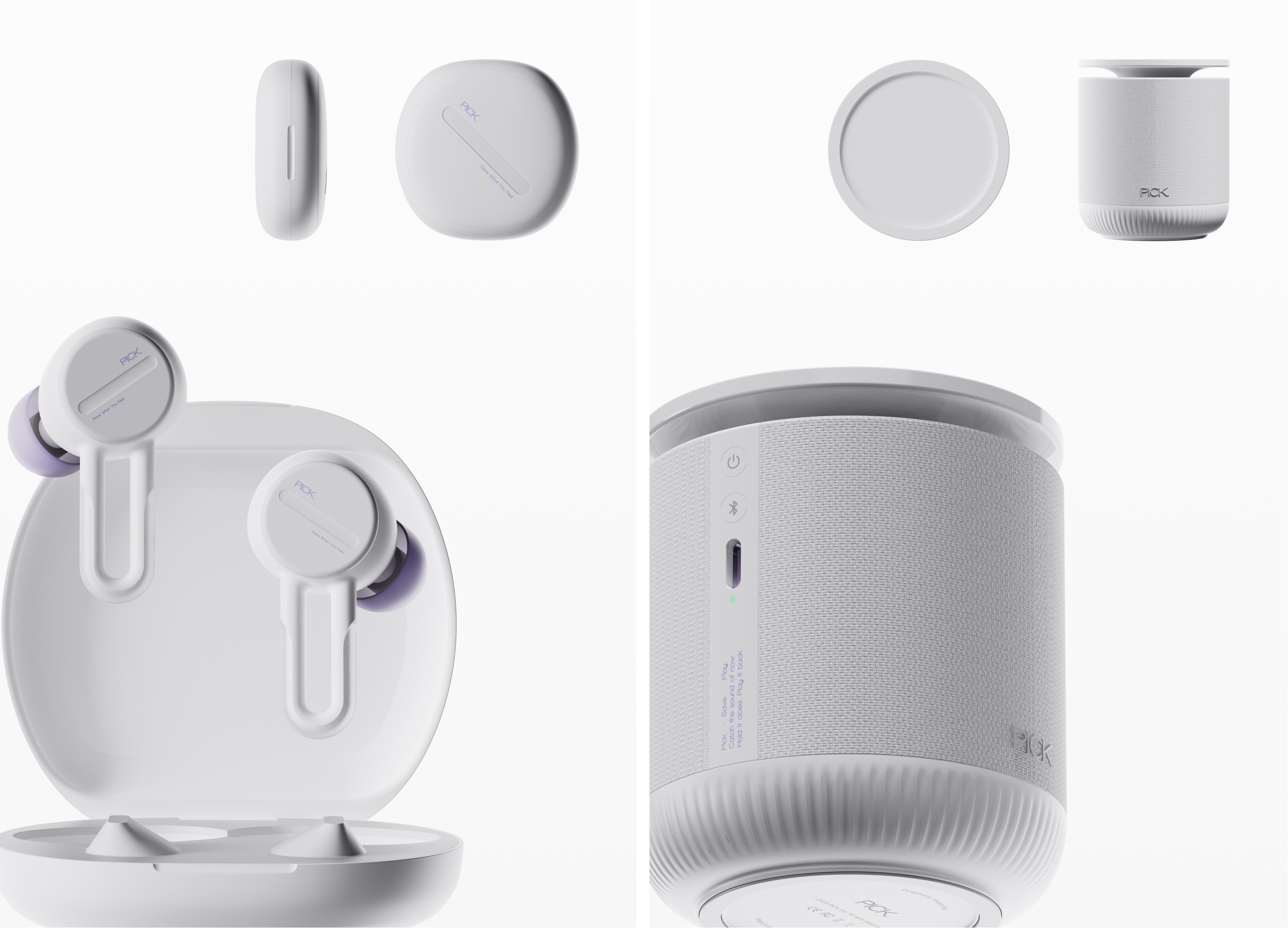AI-based music services predict our preferences and offer convenience, but the experience of choosing music ourselves is gradually fading. ‘PICK’ revives the joy of selecting music. Comprising earphones and a speaker, 'PICK' lets users pick songs they like with a simple touch, like picking up a coin. At home, placing the earphones on the speaker naturally plays the songs picked throughout the day and automatically forms a playlist. This replaces the need to unlock a phone, press like, or manually create playlists, making selection and archiving effortless and intuitive. This process turns music saving into a meaningful experience.