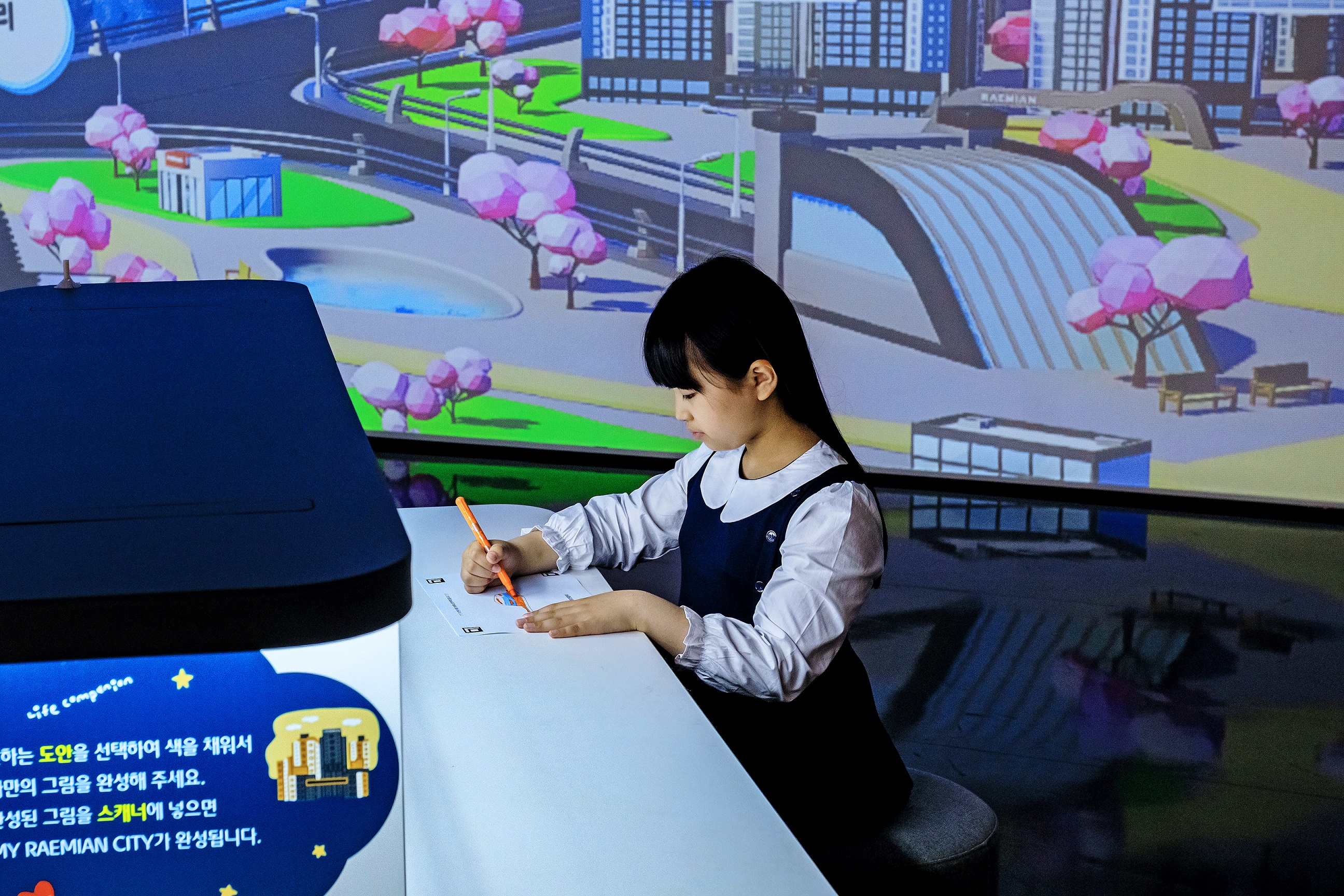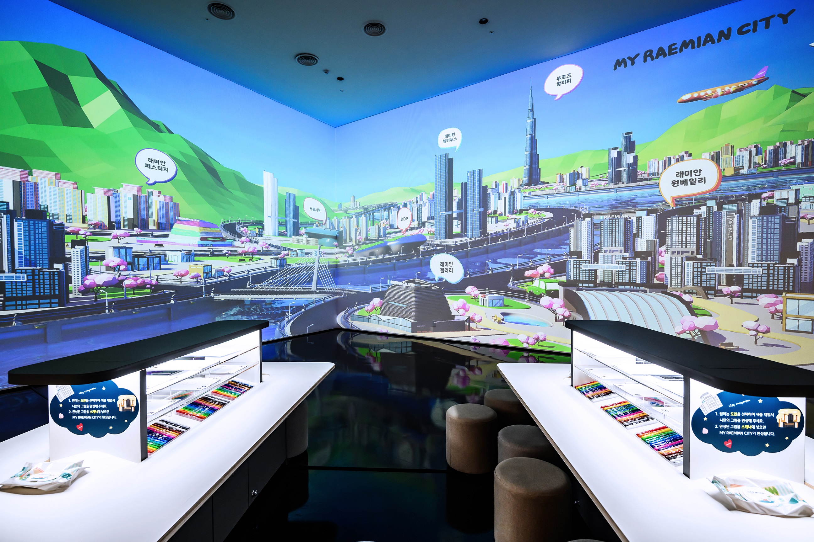 “My Raemian City” is a customer interactive experience zone in Raemian Gallery. Customers drew their own city by coloring the landmark buildings of Raemian and Samsung C&T displaying on the digital screen.