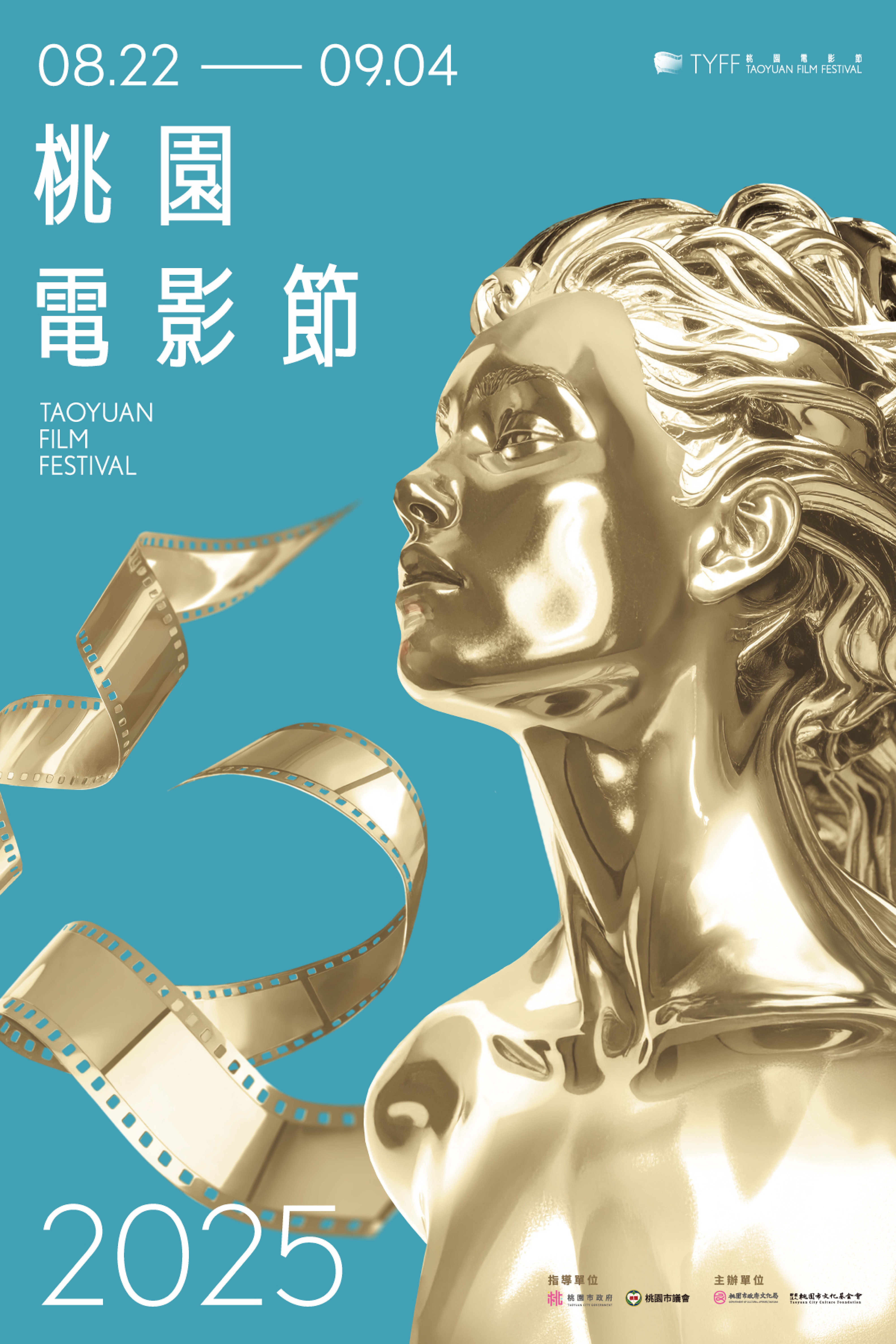 命意象,體現節慶突破傳統、推動影視革新的決心。整體設計透過女神的典雅、膠卷的動感及旗幟的象徵力量,傳達桃園電影節作為藝術革命平台的使命,激發創作者與觀眾探索影視藝術的無限未來。