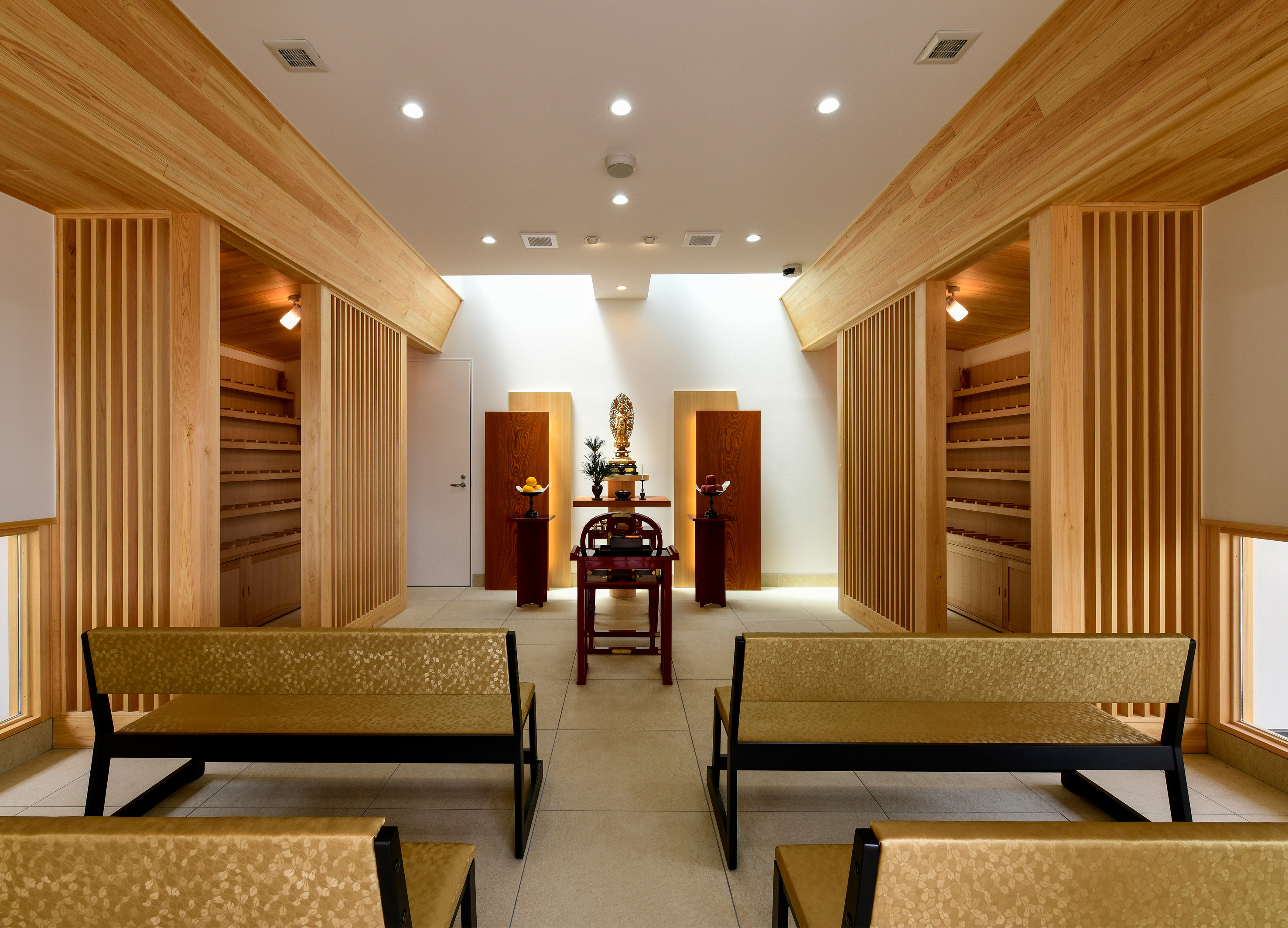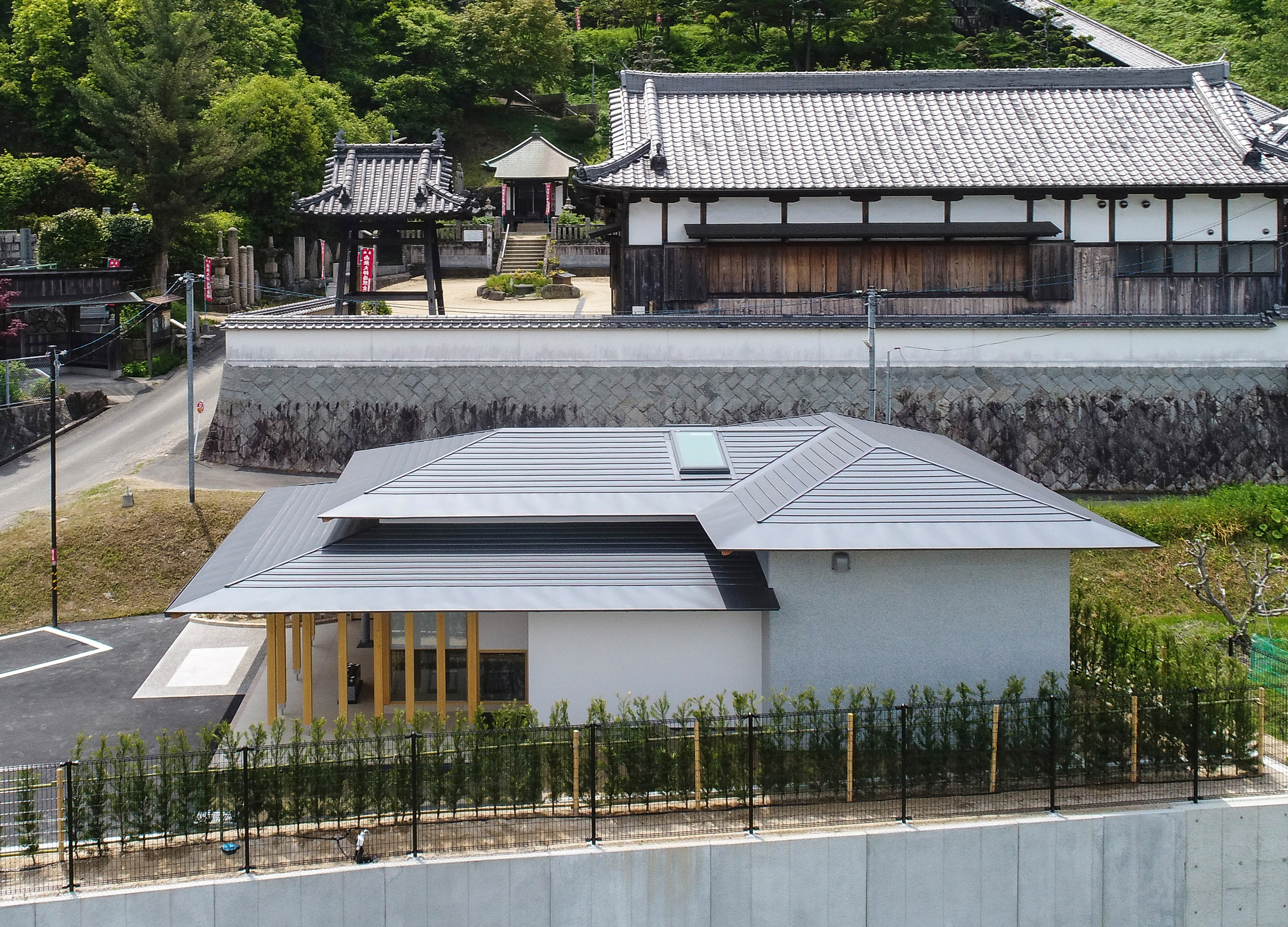 岡山県倉敷市にある寺院の敷地内に建つこの建物は周囲の落ち着いた環境と調和するよう計画された建築です。