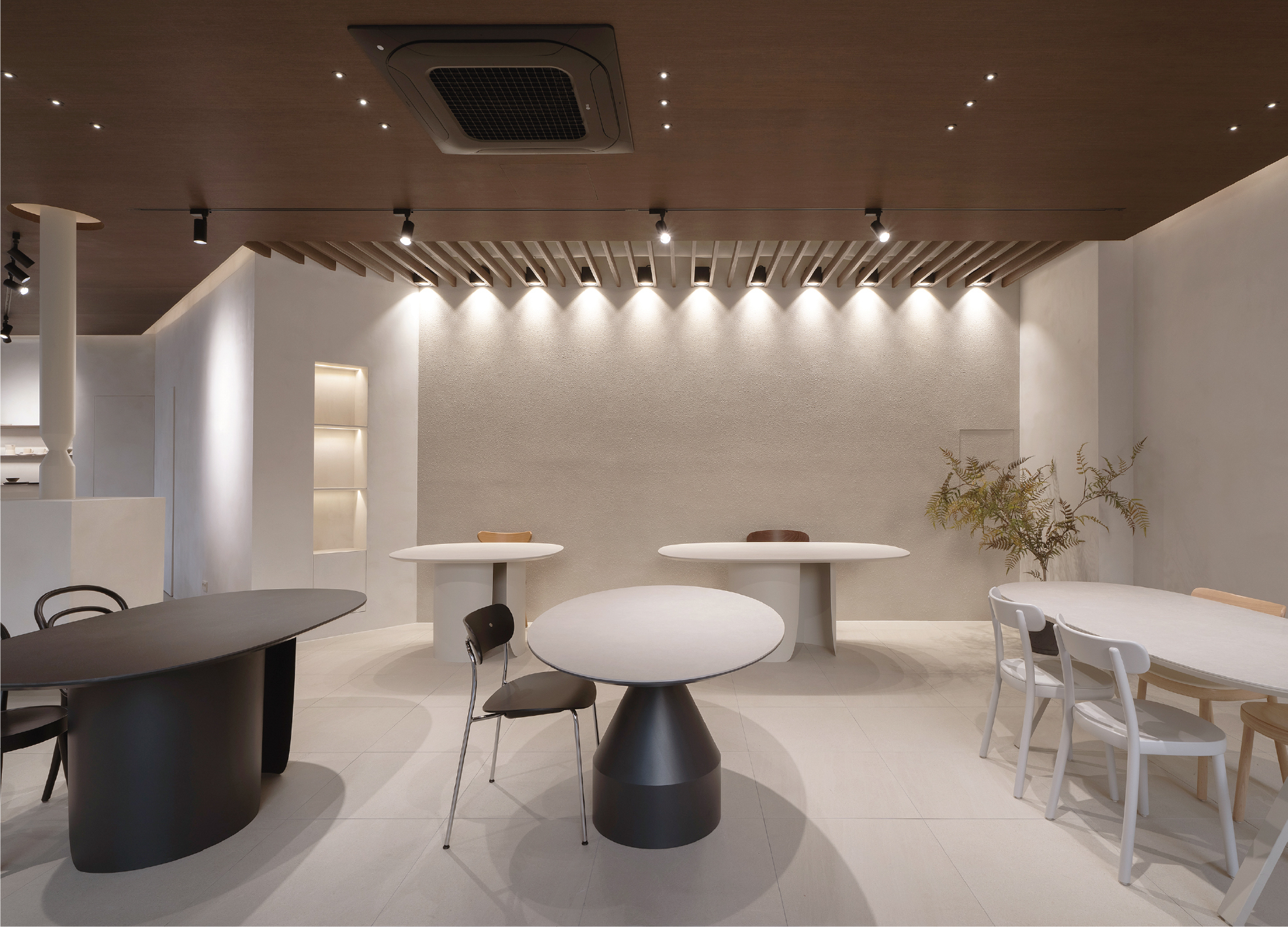 가구들은 아트피스처럼 배치되지만 공간의 축과 마감재 흐름을 세심히 조율해 전체적인 일체감을 형성한다.