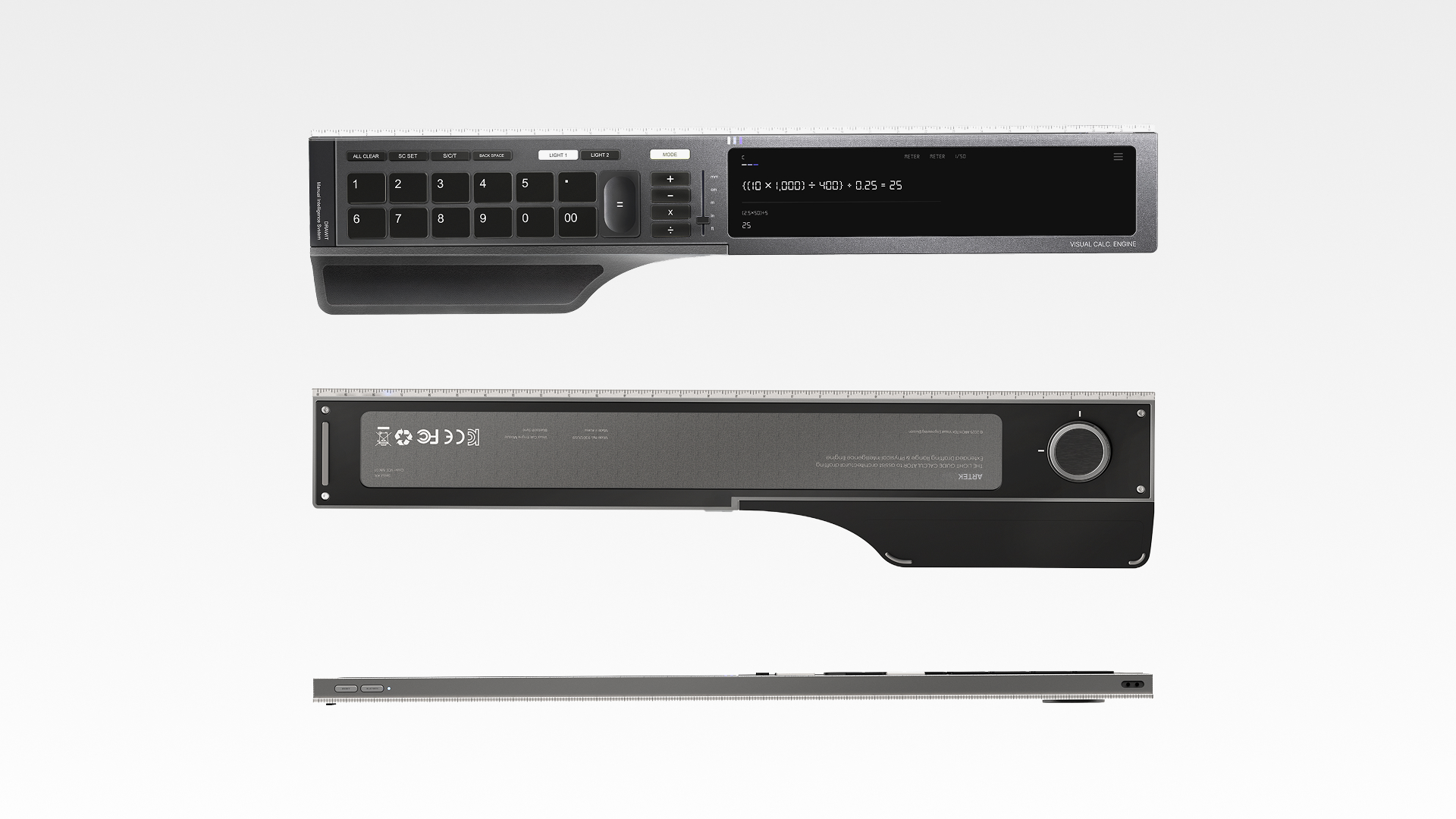 손제도는 계산, 측정, 드로잉이 긴밀하게 연결된 작업이지만, 기존 도구 환경에서는 계산기와 자가 분리되어 사용된다. 이로 인해 사용자는 계산 후 도구를 전환하고 다시 위치를 맞추는 반복적인 동작을 수행해야 하며, 이는 작업 흐름과 집중도를 저해한다. ARCH TEK은 이러한 구조적 불편함에서 출발해, 계산과 측정이 하나의 연속된 행동으로 이루어져야 한다는 관점에서 설계되었다. 기존 계산기의 형태에서 벗어나 옆으로 길게 확장된 구조를 채택함으로써 자의 역할을 자연스럽게 통합했고, 계산 직후 도구를 바꾸지 않고 바로 선을 그릴 수 있도록 한다. ARCH TEK은 익숙한 도구를 재구성해 손제도 과정의 불필요한 동작을 줄이고, 보다 효율적이고 연속적인 아날로그 작업 환경을 제안한다.