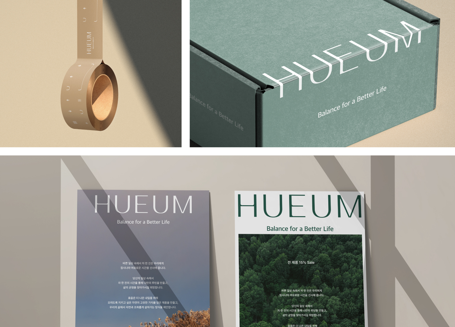 Hueum is a home cafe tableware brand, inspired by the unique colors of nature with the theme of ‘sustainability’ and ‘uniqueness’, containing ‘colors of nature that we want to preserve for a long time’. The existing logo had many messages to convey, which led to complexity and the problem of not being able to capture the attention of consumers. To solve this, we conducted a rebranding and focused on condensing many messages contained in the existing logo into relaxation and leisure. We made it possible to form an emotional bond by allowing people to leisurely capture their attention and look into Hueum’s philosophy.