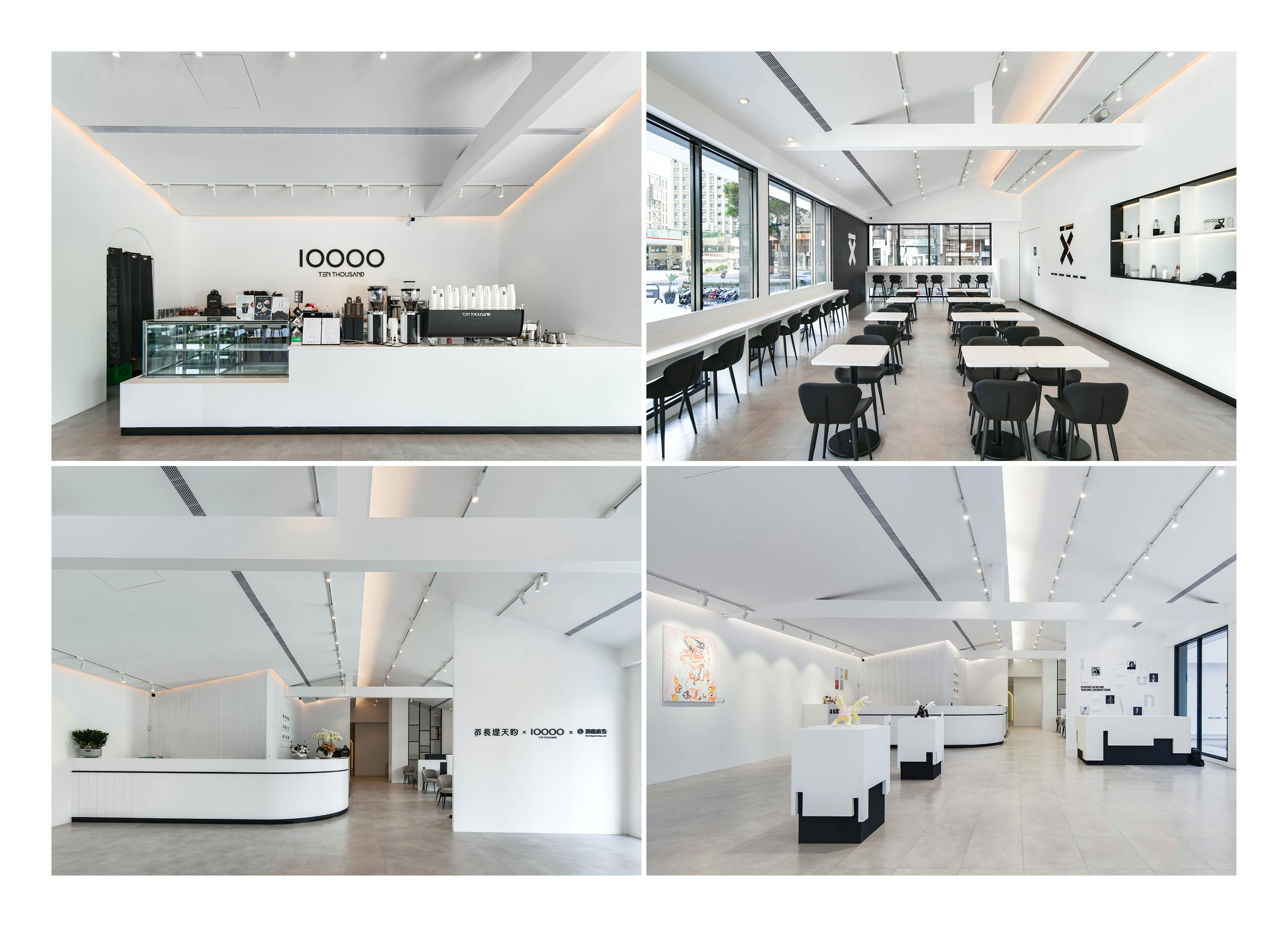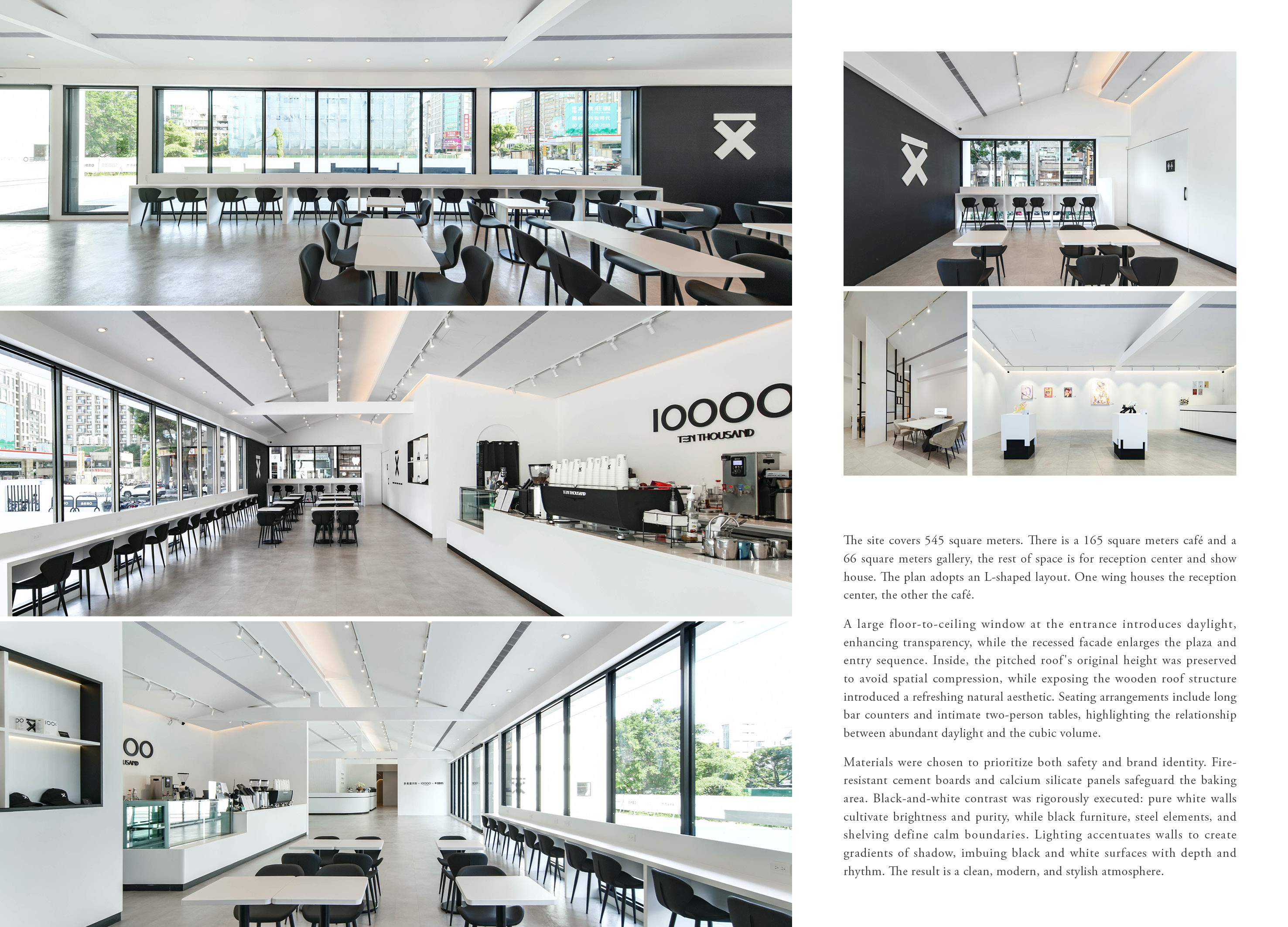 Renovated from an old structure, the café retains its pitched roof while adopting a cubic form. A luminous light-band façade transforms it into a glowing “city lantern” at night. Inside, the preserved roof height and exposed wooden beams create openness and warmth. Seating combines long counters with cozy tables, emphasizing daylight interaction within the cubic volume. The coffee bar follows strict brand standards, with efficient circulation for all equipment. Outside, shrubs, succulents, and cacti echo the brand’s logo, forming a desert-like oasis that glows at night and invites visitors to pause and enjoy.