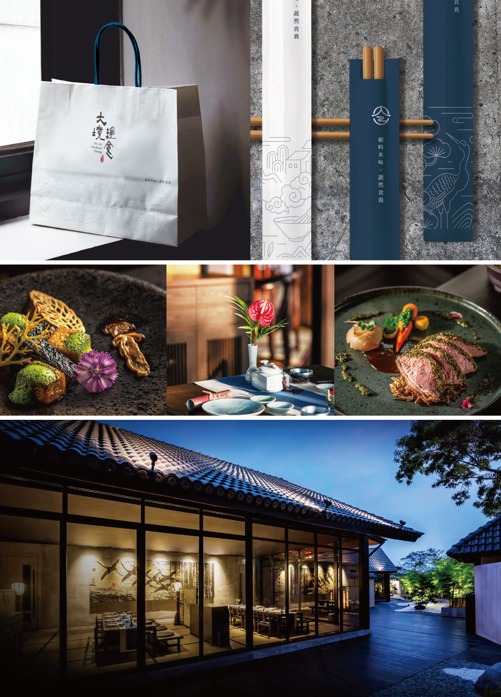 大境璞食 Dai Jin Omakase 以東方道禪精神結合自然蔬食哲學,重新定義 Fine Dining 領域中的蔬食體驗。品牌定位以「自然、養生、身心平衡」為核心,鎖定注重生活質感、追求心靈療癒的中高端消費者。設計策略從品牌精神出發,強調順應四時、尊重食材本味,形塑出「循時本味,蔬然食養」的品牌世界觀。