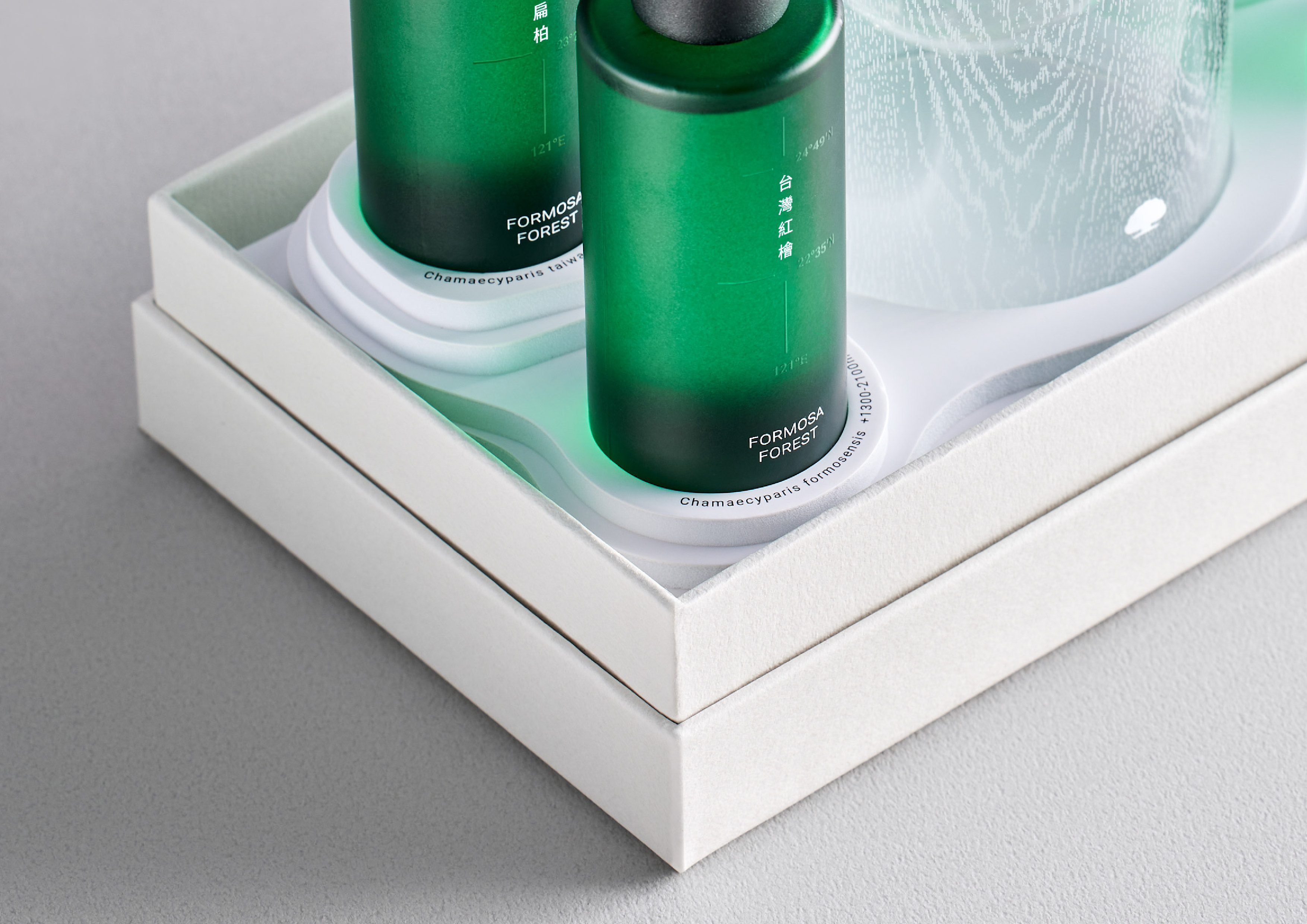 台灣是全球高山密度最高的島以及擁有豐富的森林生態,隨著小島內快速的都更腳步,每天看到的已不再是美麗的山林。我們積極尋找以台灣自然材料與文化為核心的設計方案,在日常生活中持續傳遞對這片土地的認同與珍惜。這次的香氛設計,透過台灣特有針葉樹香氣的調配,並結合地形起伏的視覺語彙,重新喚起人們對台灣山林保育與自然棲地的重視,守護並推廣台灣獨特的自然與文化印象。 作為傳遞台灣自然之美與文化意象的重要媒介,我們透過香氣組合的在地樹種設定、葫蘆造型瓶身的寓意轉譯以及等高線包裝設計對山脈地景的呈現,推動使用者對台灣自然環境與文化脈絡的認識。透過企業所能發揮的影響力,帶動社會對在地文化的關注與參與,也透過設計介入日常生活、延續地方記憶的實踐價值。