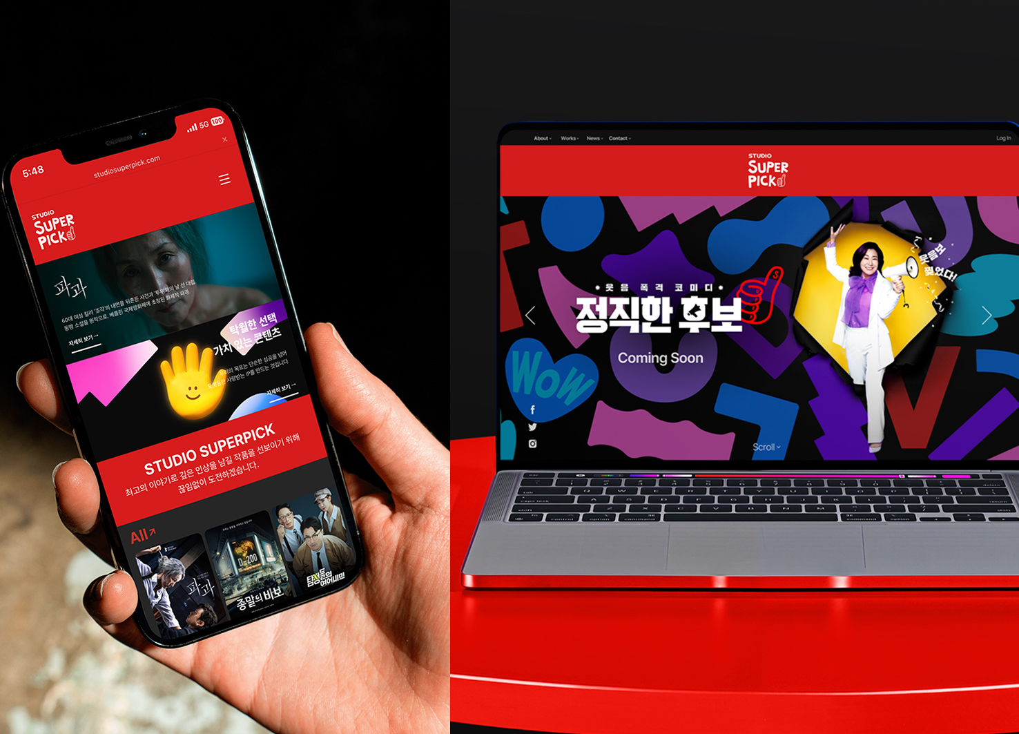 <STUDIO SUPERPICK>은 영화, 드라마, 예능 등 다양한 콘텐츠를 제작하는 스튜디오로, ‘최고의 선택(The Best Choice)’이라는 철학을 시각적으로 구현했습니다. 전 세계 어디서나 통용되는 엄지척(Thumbs-up) 제스처를 브랜드 스토리의 중심에 두고 이를 핵심 심볼 ‘PICKer’로 발전시키며 브랜드의 정체성을 구축했습니다. 이 제스처는 단순한 동작을 넘어 선택과 탁월함, 창의성을 상징하는 시각 언어로 확장되어, 문화와 언어의 장벽을 넘어 감정적으로 공감하는 새로운 방식의 커뮤니케이션을 가능하게 합니다. 또한 유연한 라인 형태의 PICKer는 다양한 장르와 감정의 결을 자연스럽게 담아내며 브랜드 경험의 폭을 넓힙니다.