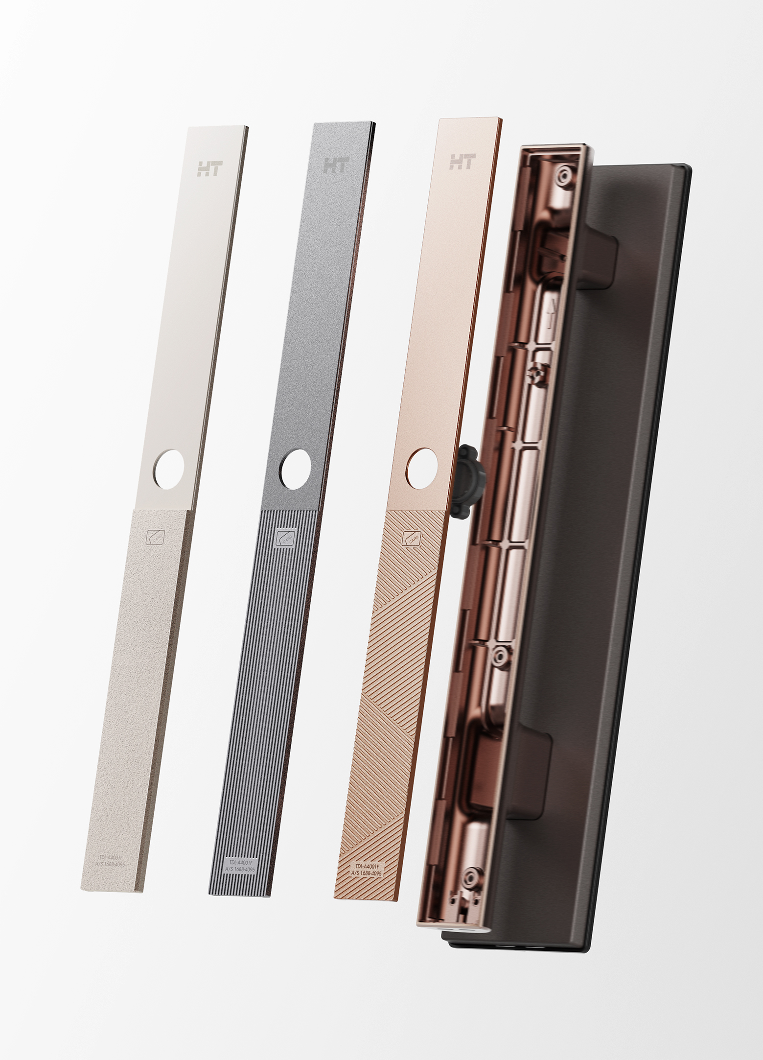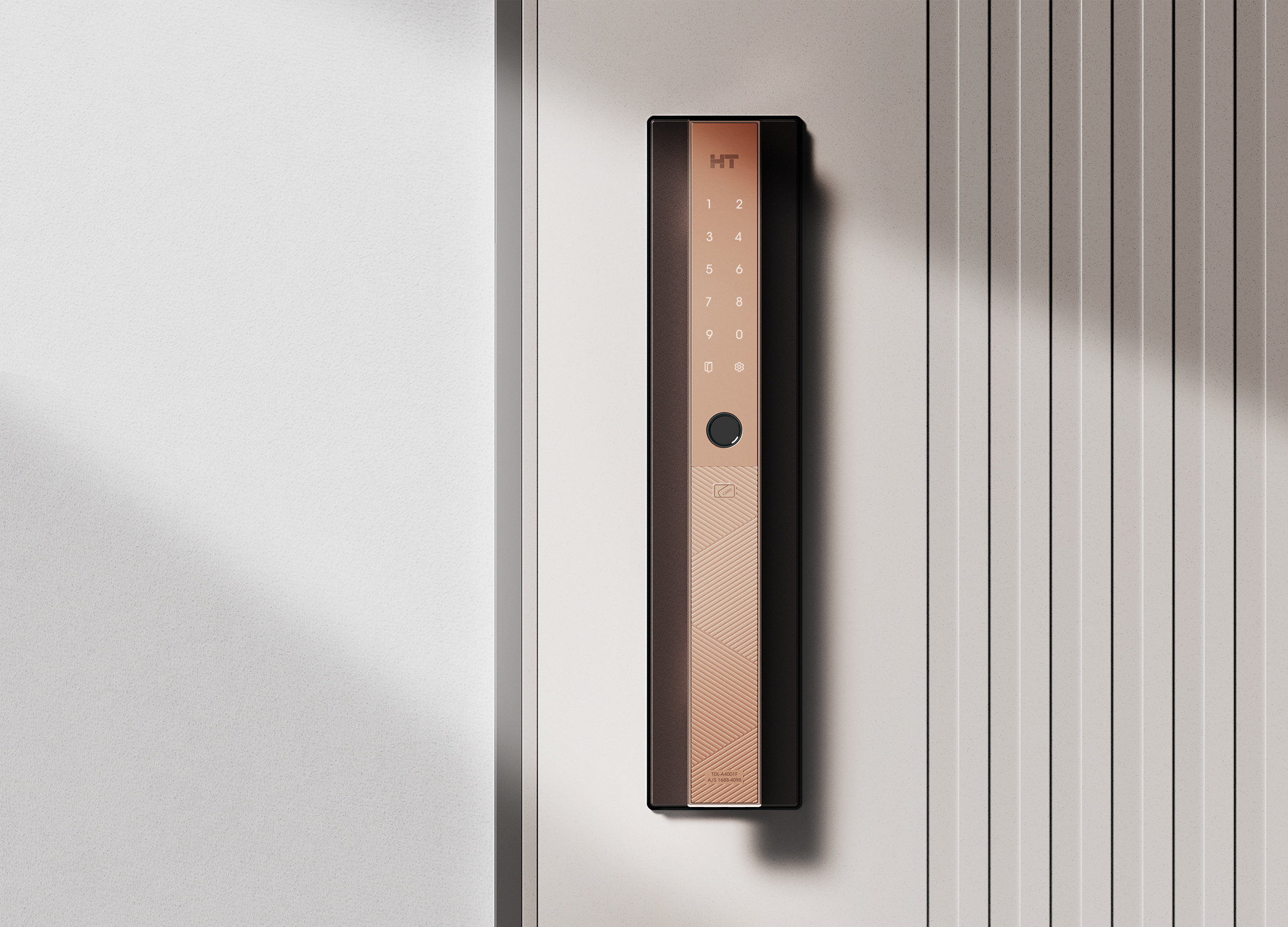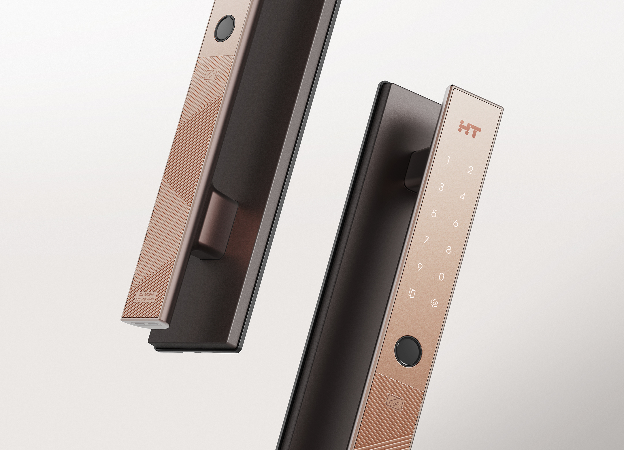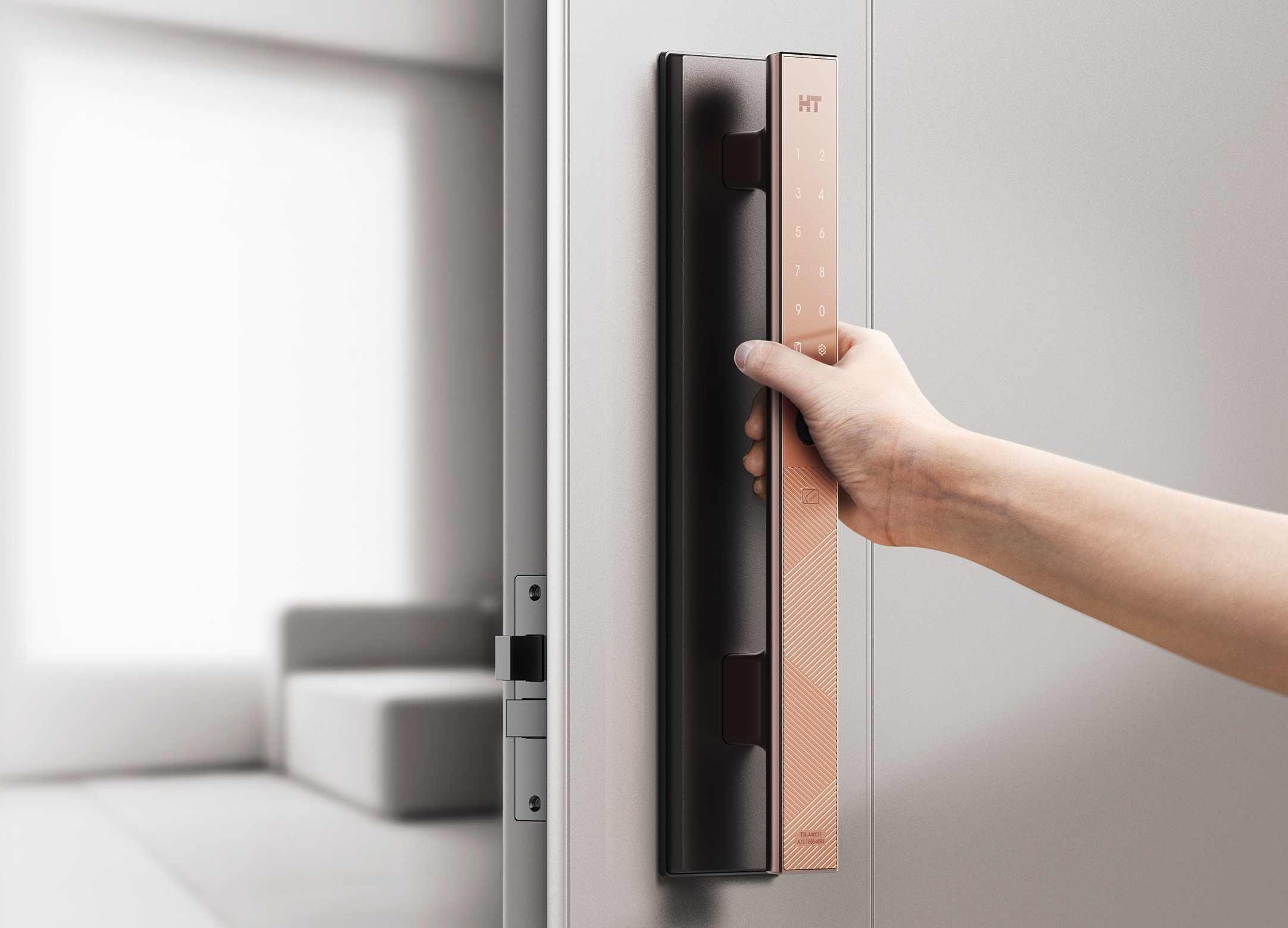 TDL-A4001 features Auto Latch that secures the door automatically when it closes, delivering fast and reliable everyday security. Its vertical handle fits naturally in the hand and smoothly guides the thumb toward the fingerprint sensor for an intuitive and seamless user experience. The lower front applies an oblique pattern that reveals depth with shifting light, paired with a refined copper tone and a slim dual-column keyplate. Modular upper and lower sections enable flexible variations to match diverse user preferences or interior styles.