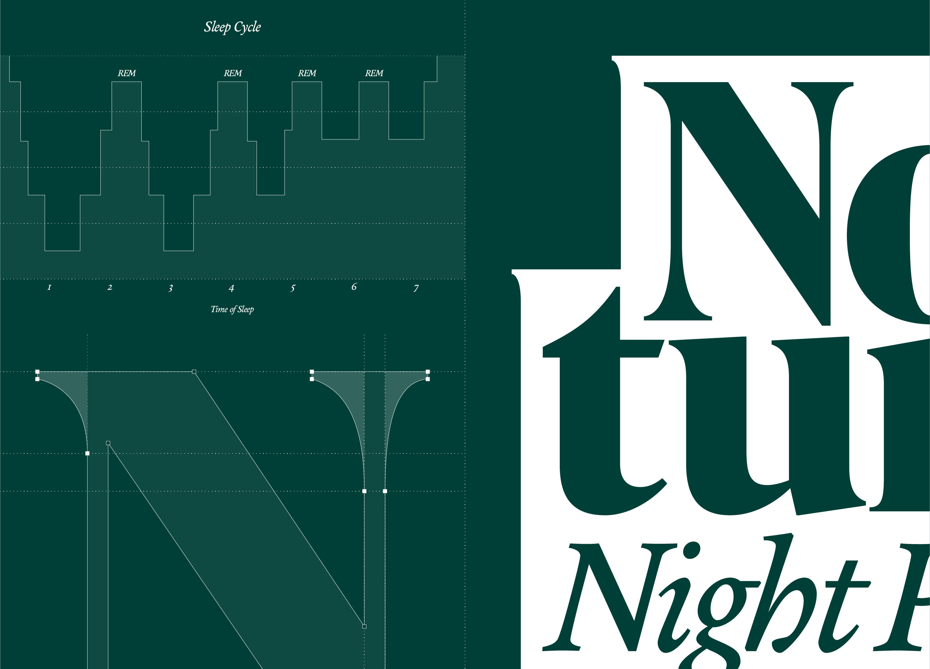 브랜드 디자인은 이러한 철학을 시각적으로 구현했습니다. 메인 로고 프레임은 ‘수면 사이클 그래프’에서 영감을 받아 얕은 잠에서 깊은 REM 수면까지 이어지는 흐름을 형상화했습니다. 또한 무게감 있는 세리프 서체와 짙은 녹색을 사용해, 직선과 곡선의 조화 속에서 견고한 수면 루틴과 아늑한 감성을 동시에 담아냈습니다.