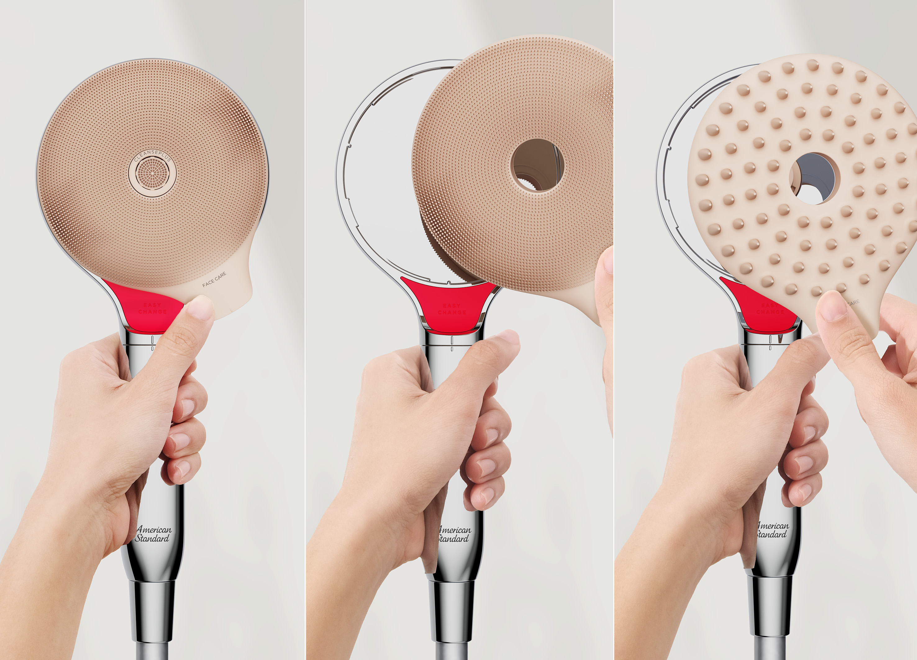 Shower spaces are evolving, shifting from basic cleansing to diverse experiences trending towards self-care. American Standard’s DuoCare Hand Shower addresses this by transforming the shower into a multipurpose self-care space. Its unique dual-face design easily flips from a shower to an interchangeable spray face for face, skin, scalp, and body care. The patented CleansePlus microbubble technology enhances cleansing efficacy, while thoughtful ergonomics ensure seamless daily use. The use of modular architecture allows us to deliver advanced features at accessible price points, democratizing access to better self-care.