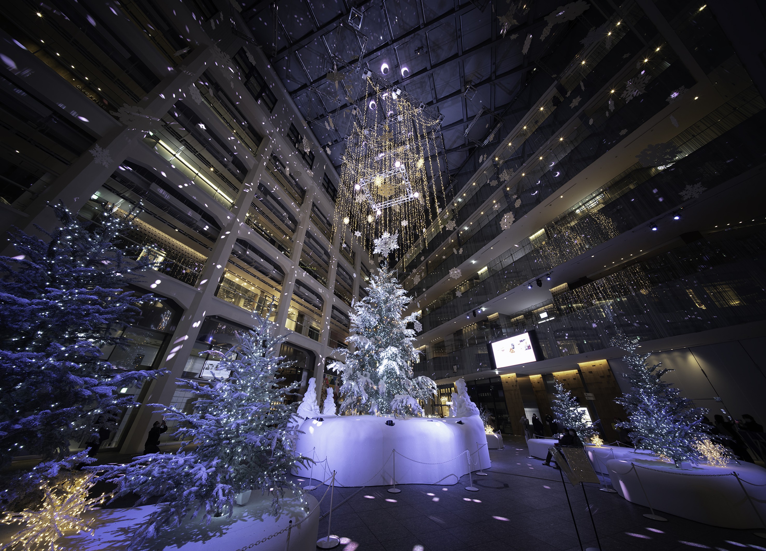 KITTE no Mori: Winter Forest Christmas – Gifts from Nature” transformed the KITTE atrium into a serene winter forest inspired by “Connecting.” Snow on the fir branches was recreated with extreme precision, capturing the texture and light of real snow. A pure white 12-meter tree and recycled “Mildan” snowflakes shaped a gentle winter scene. With an original “Forest Orchestra” musical piece and daily show, visitors created personal memories through sound and light. Designed from the visitor’s perspective, the project aimed to deliver a truly Christmassy experience that brings joy across ages and borders.
