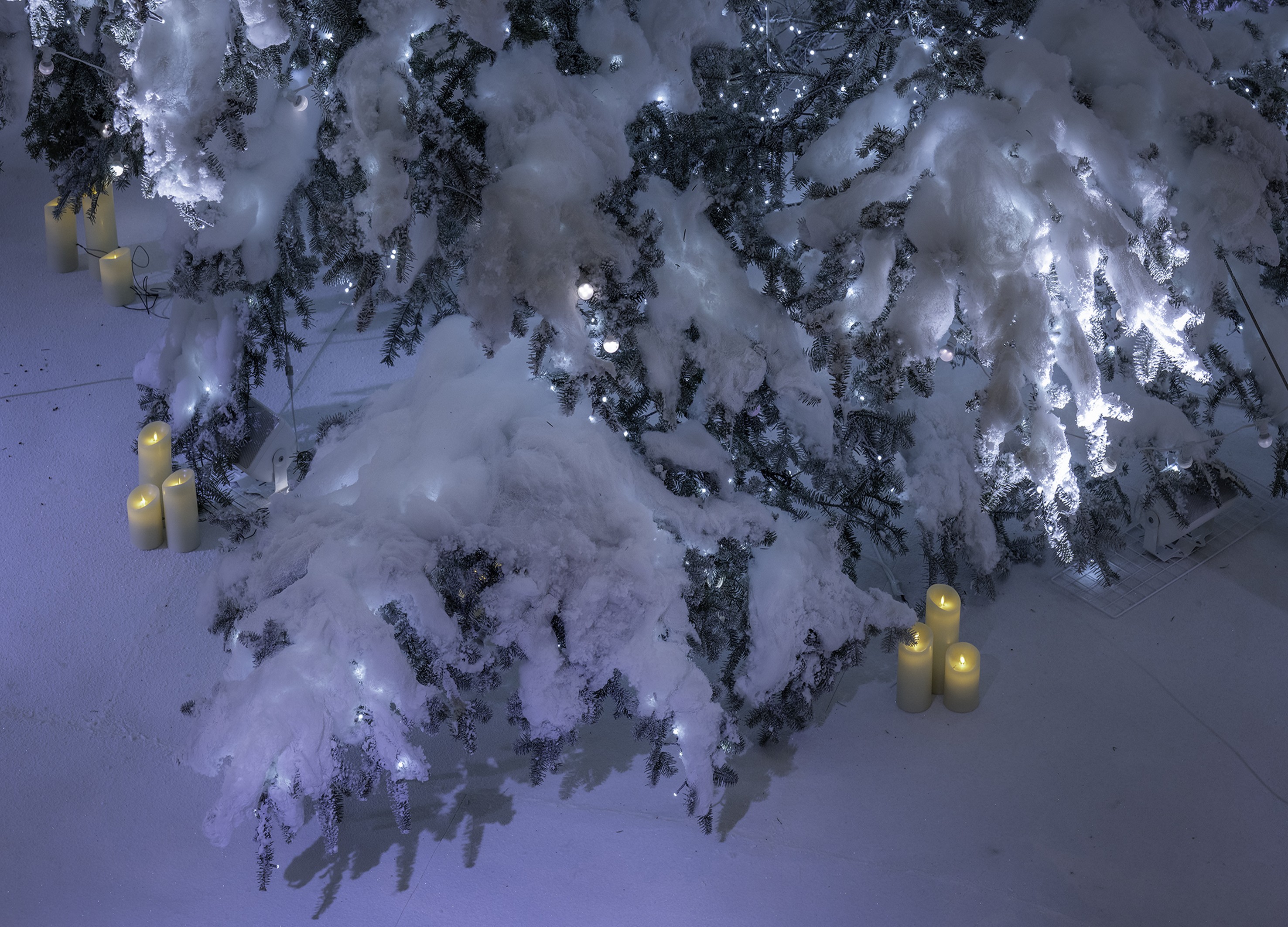 期間中には音と光が響き合うショーも行われ、白い森が七色に移ろうドラマチックな演出が、人々に季節の温もりと自然の力強さを感じさせました。