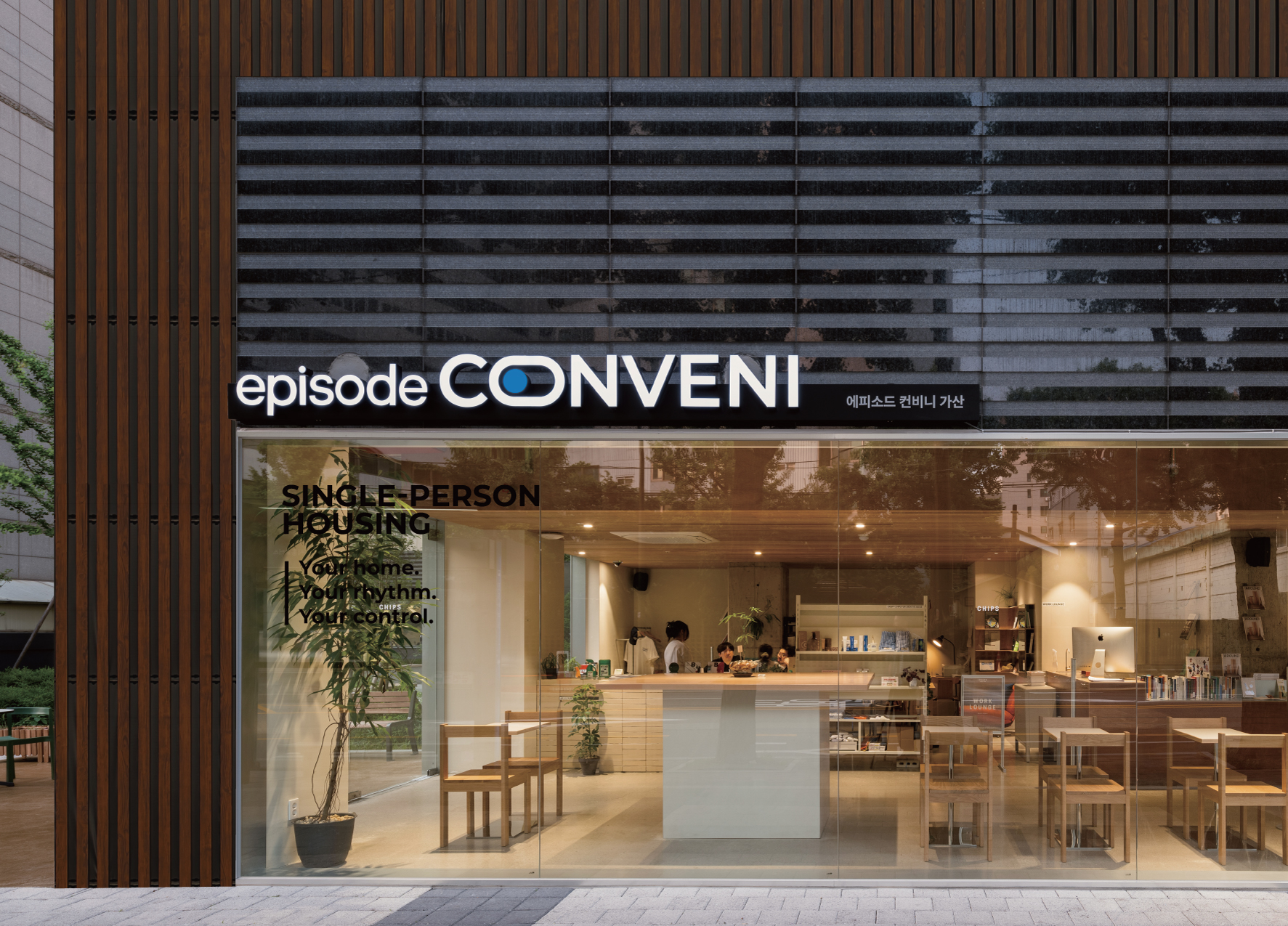 에피소드 컨비니는 도시에서의 컴팩트하고 편안하며 스스로 제어 가능한 삶을 위해 불필요한 기능을 더하기보다, 사용자가 필요할 때만 필요한 것을 선택해 켤 수 있도록 하여 복잡한 도시의 삶을 단순하게 만듭니다.