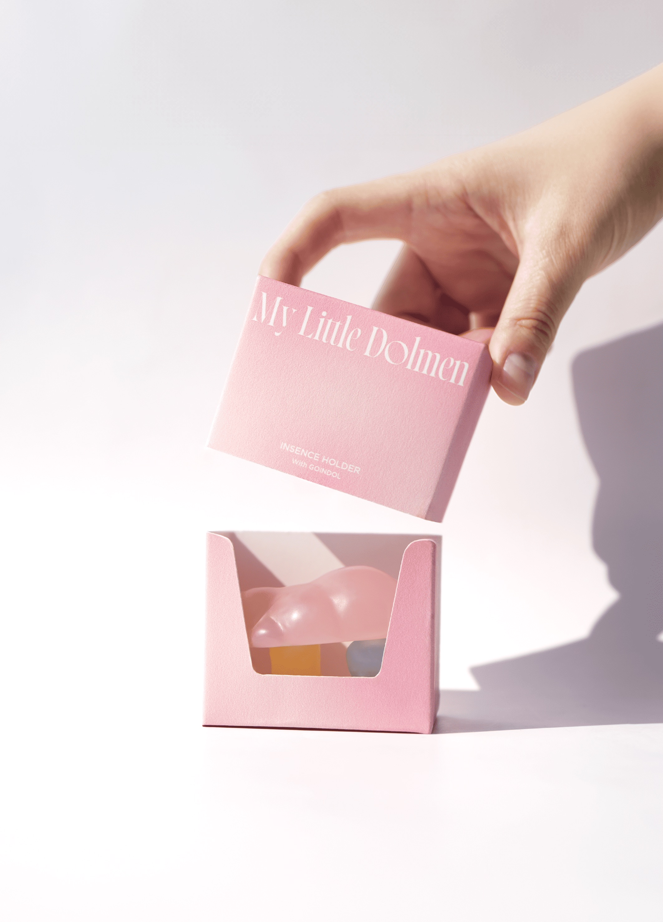 My Little Dolmen reinterprets the Ganghwa Bugeun-ri Dolmen, one of Korea’s representative prehistoric heritage sites, through a contemporary lens. By softening the rigid table-type structure into flowing curves and pastel tones, the object becomes a collectible of personal taste across generations. The material shift from stone to transparent resin allows light to pass through, positioning the dolmen as a medium that connects the past and the present through light. Through this transformation, the dolmen is reimagined not as a static relic but as living heritage within everyday life.