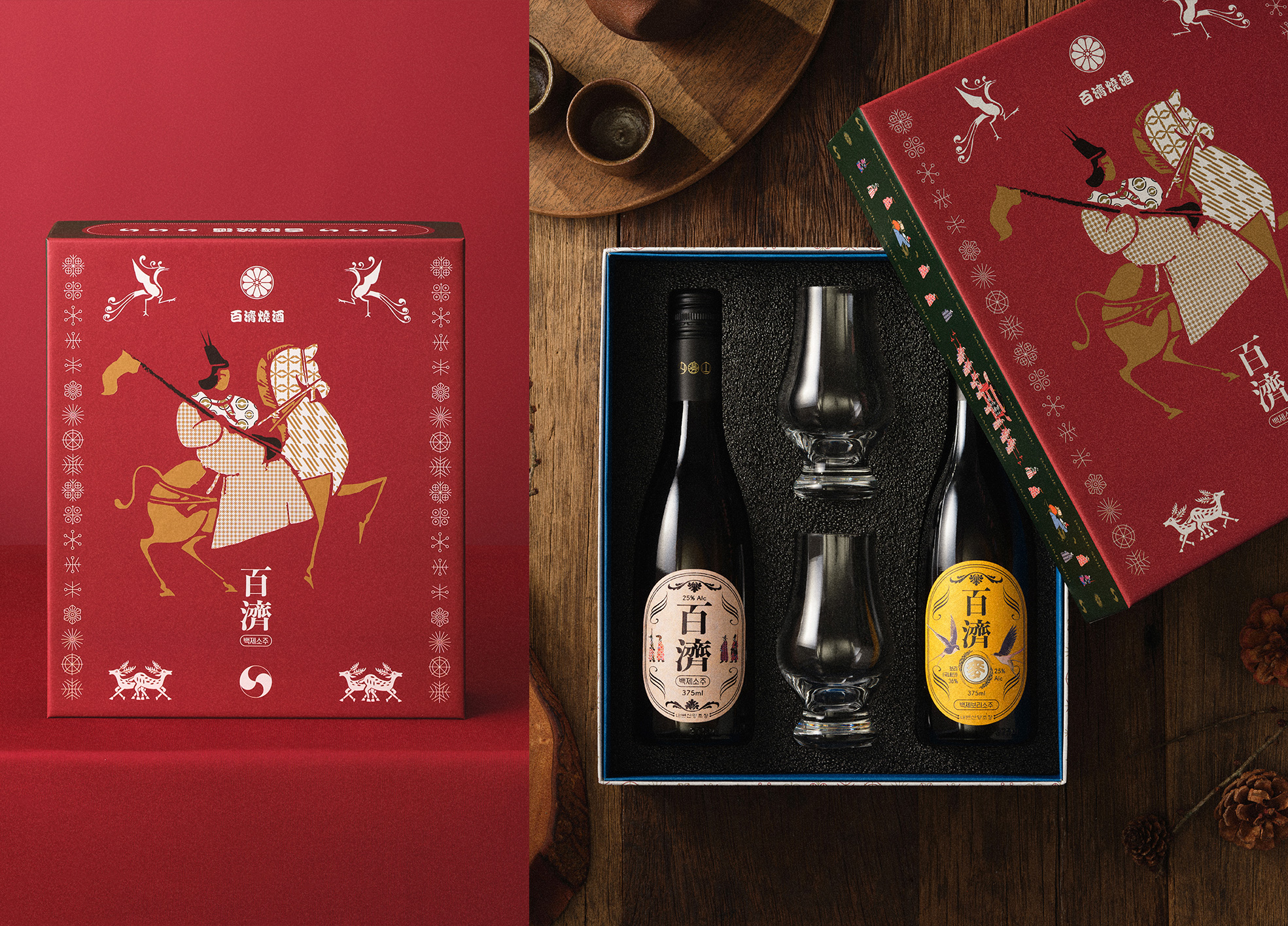 Baekje Soju from Naebyeonsan Distillery is introduced as a premium set and high‑end series that brings the Baekje dynasty’s legacy into a modern context. The lineup from 25 to 45 ABV features patterns inspired by Baekje costumes and artifacts to convey historical depth and refined character. The premium design aims to offer more than a drink by evoking the feeling of receiving a treasured gift once fit for royalty. From the moment the package is opened, the experience communicates cultural heritage and timeless elegance, strengthening Baekje Soju’s unique identity for those seeking tradition and sophistication.