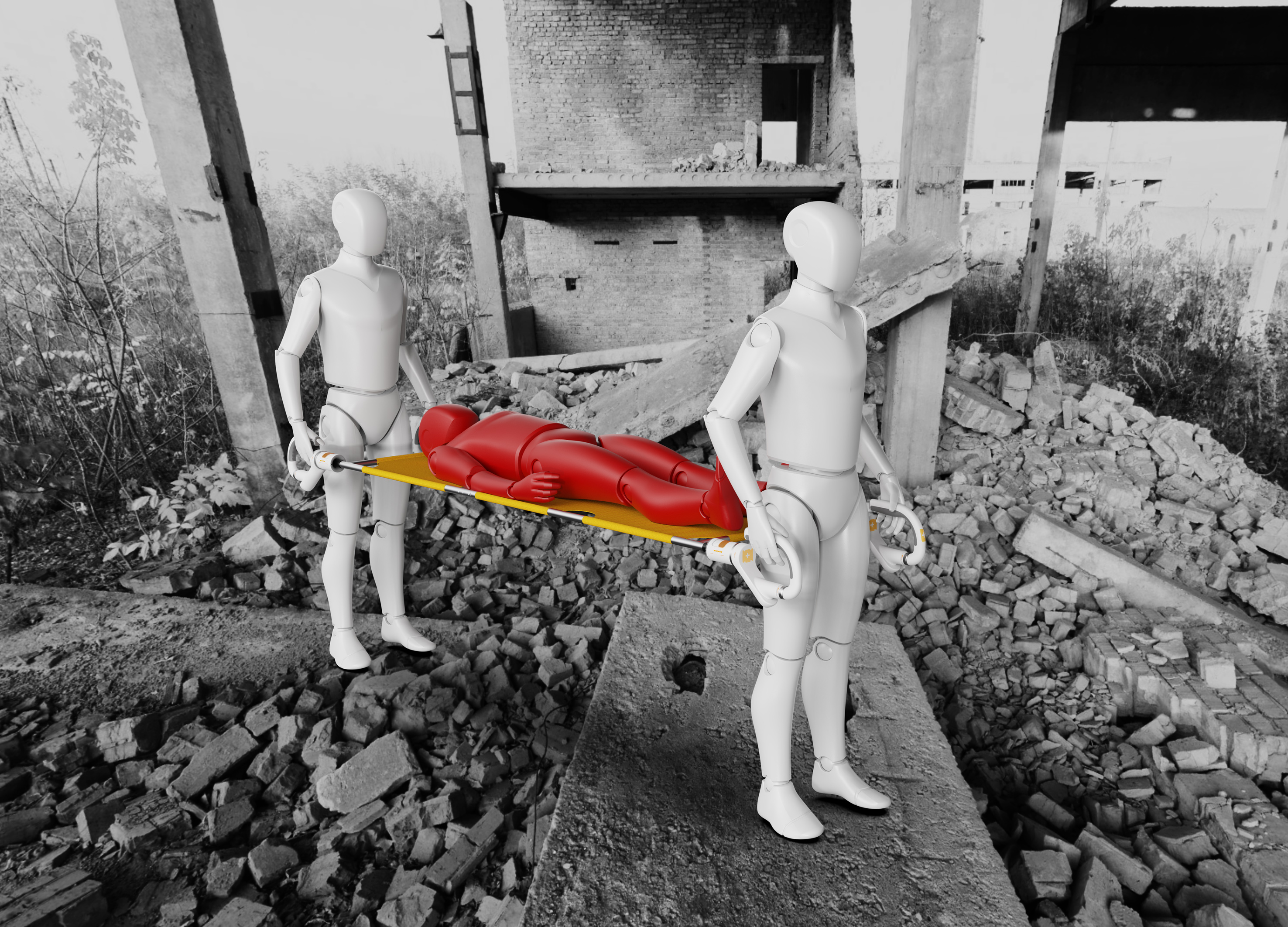 在凹凸不平的路面,担架会随着地形变化产生摇晃颠簸,给救援人员增加了难度,也极易给被救伤员造成二次伤害。
