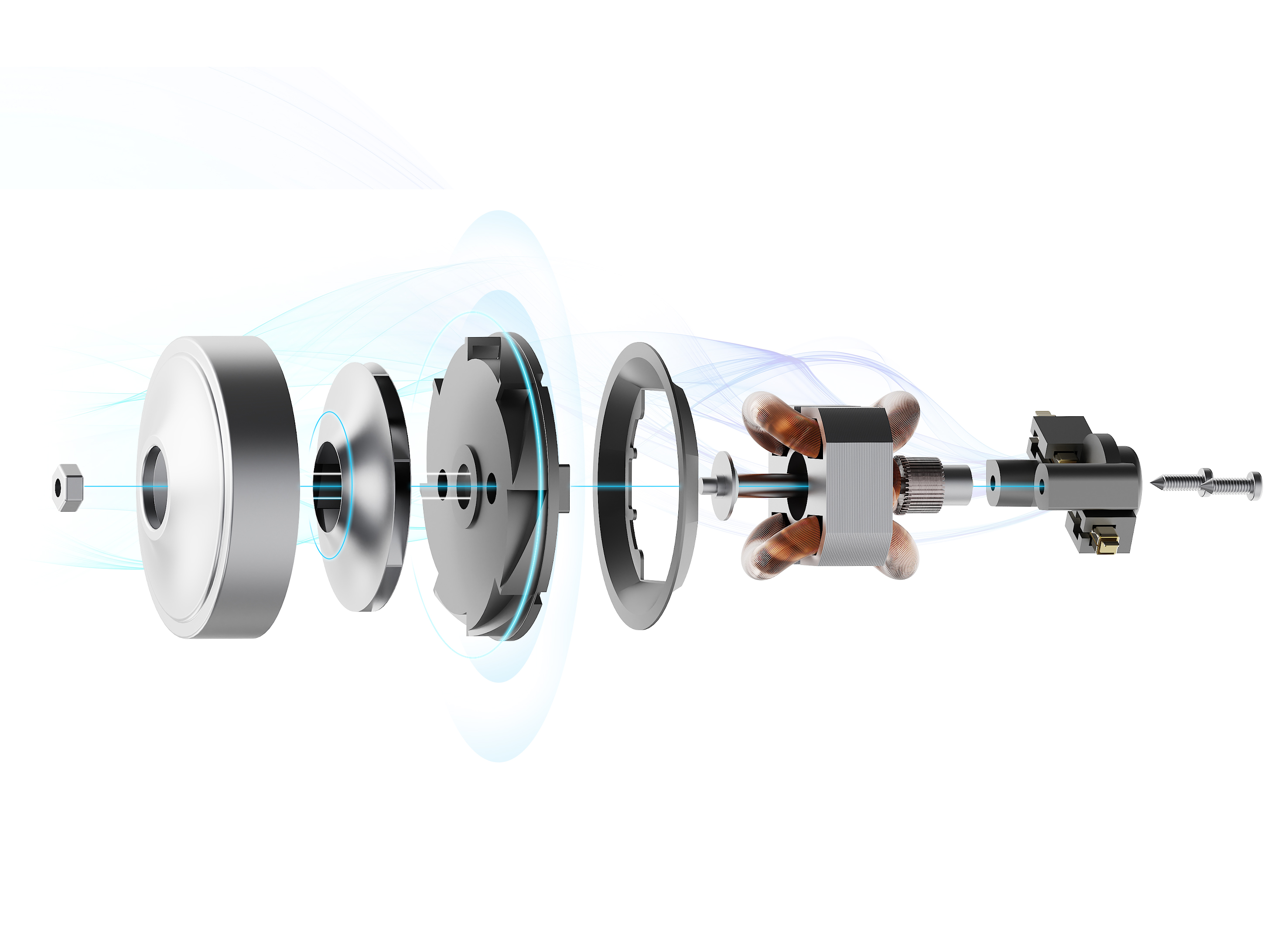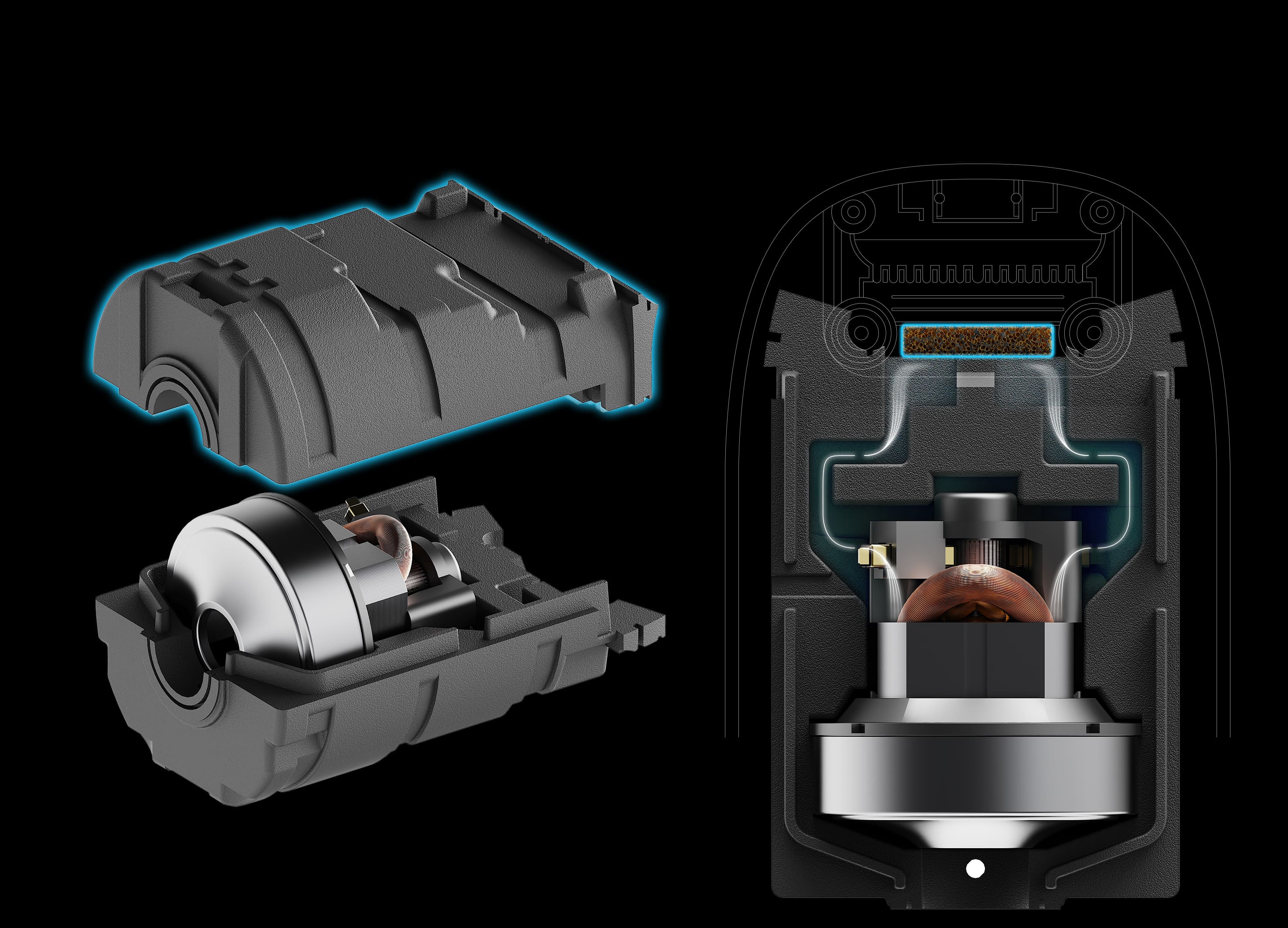 2.기존 소음 문제 해결을 위해 모터 전체를 흡음제로 감싸고, 공기 배출구에도 추가 흡음제를 장착하여 소음을 대폭 감소시킴