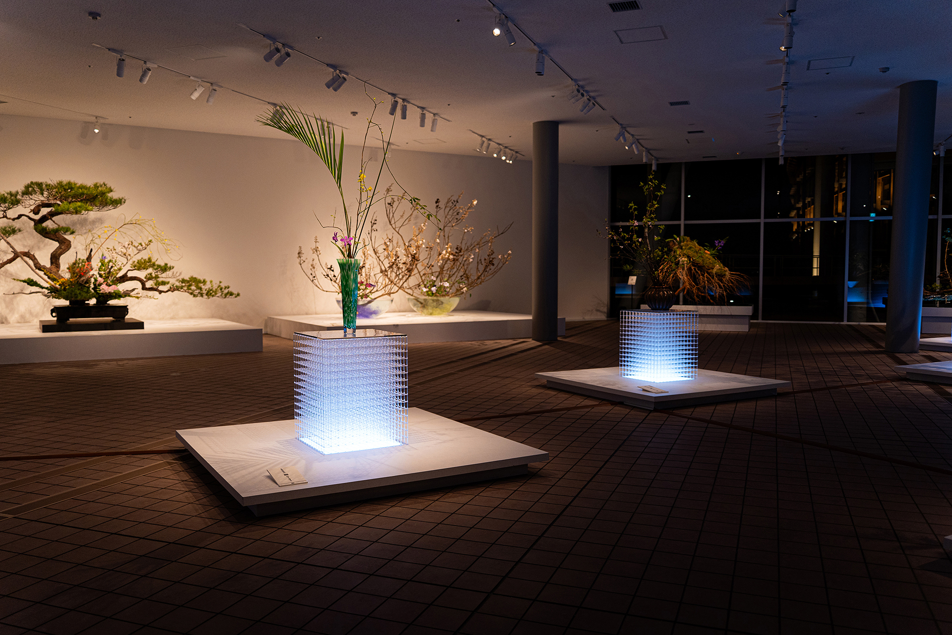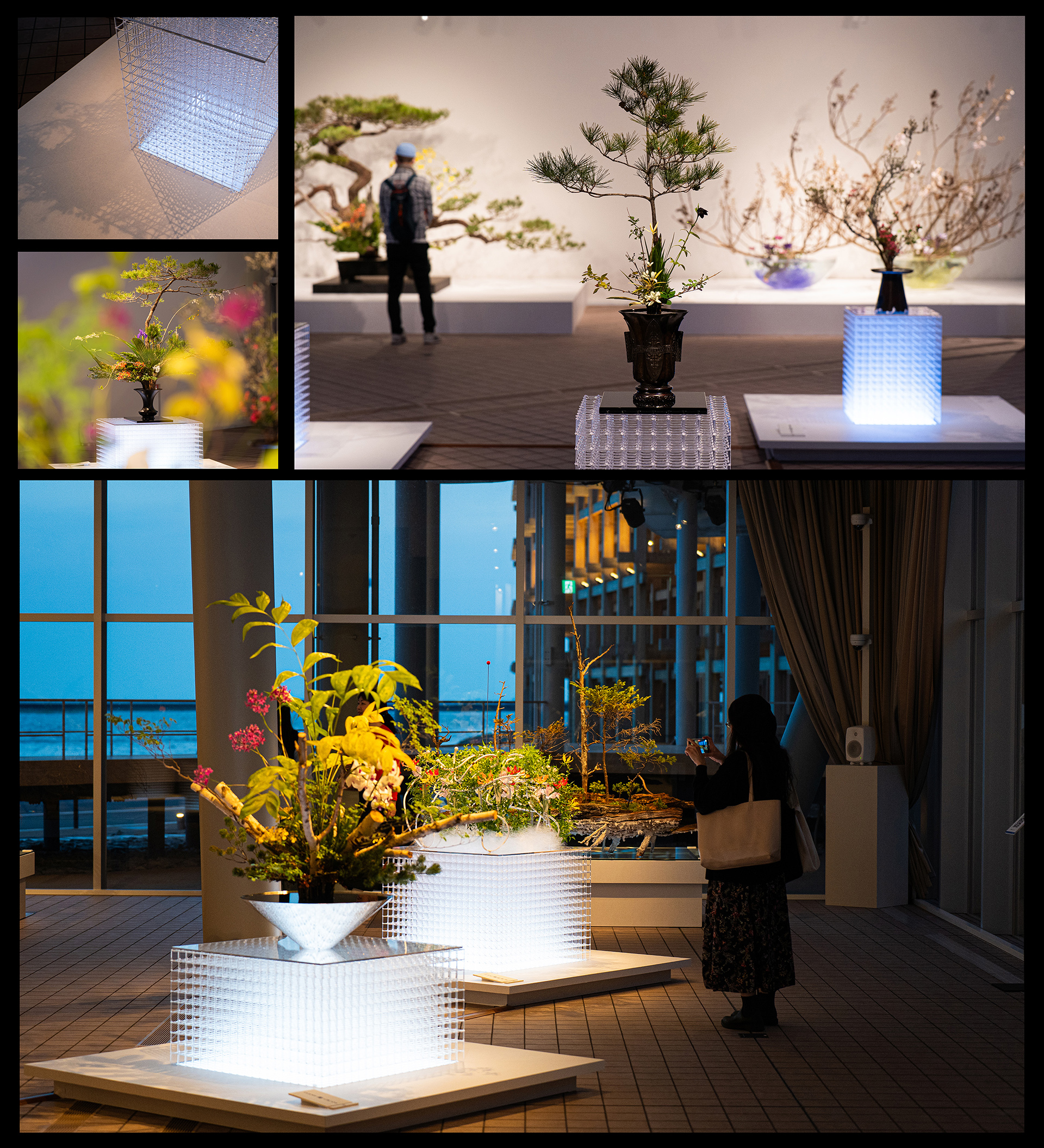Commissioned for Expo 2025 Osaka, Kansai, the Ikenobo Kado Association—originator of Japanese ikebana—presented an unprecedented exhibition reinterpreting 1,400 years of floral tradition for a global audience. Set in a glass-walled gallery by the sea, the design layers shifting sunlight, dynamic illumination, and the natural transformation of flowers to create a time-based artwork where no moment repeats. A wall-less, self-supporting layout invites free movement and engagement, challenging ikebana’s traditional frontality. Recycled 3D-printed fixtures replaced disposable structures, ensuring sustainability and reuse.