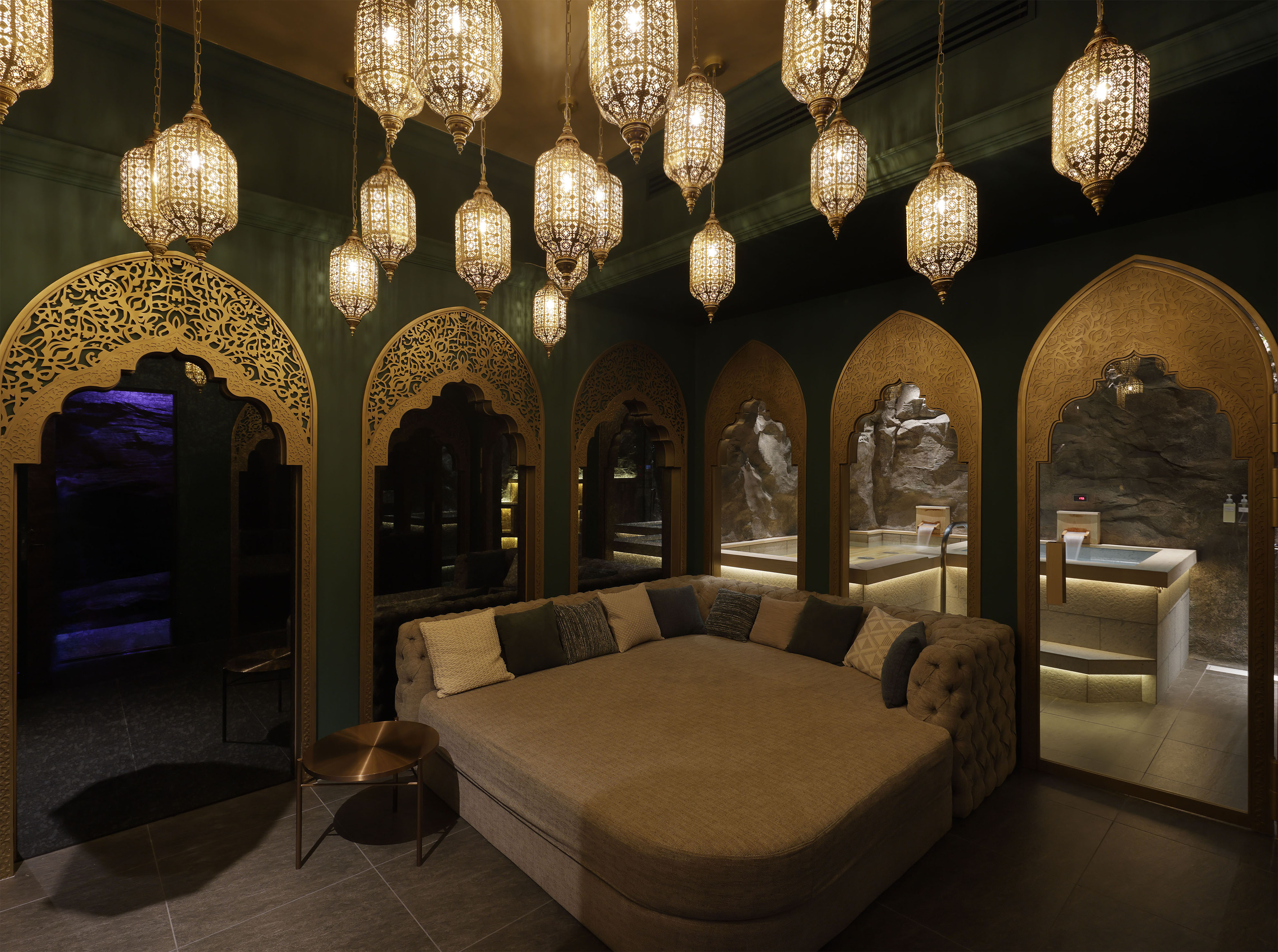 The common area is a stunning design inspired by Antelope Canyon, with mysterious and spectacular views carved into the rock crevices.