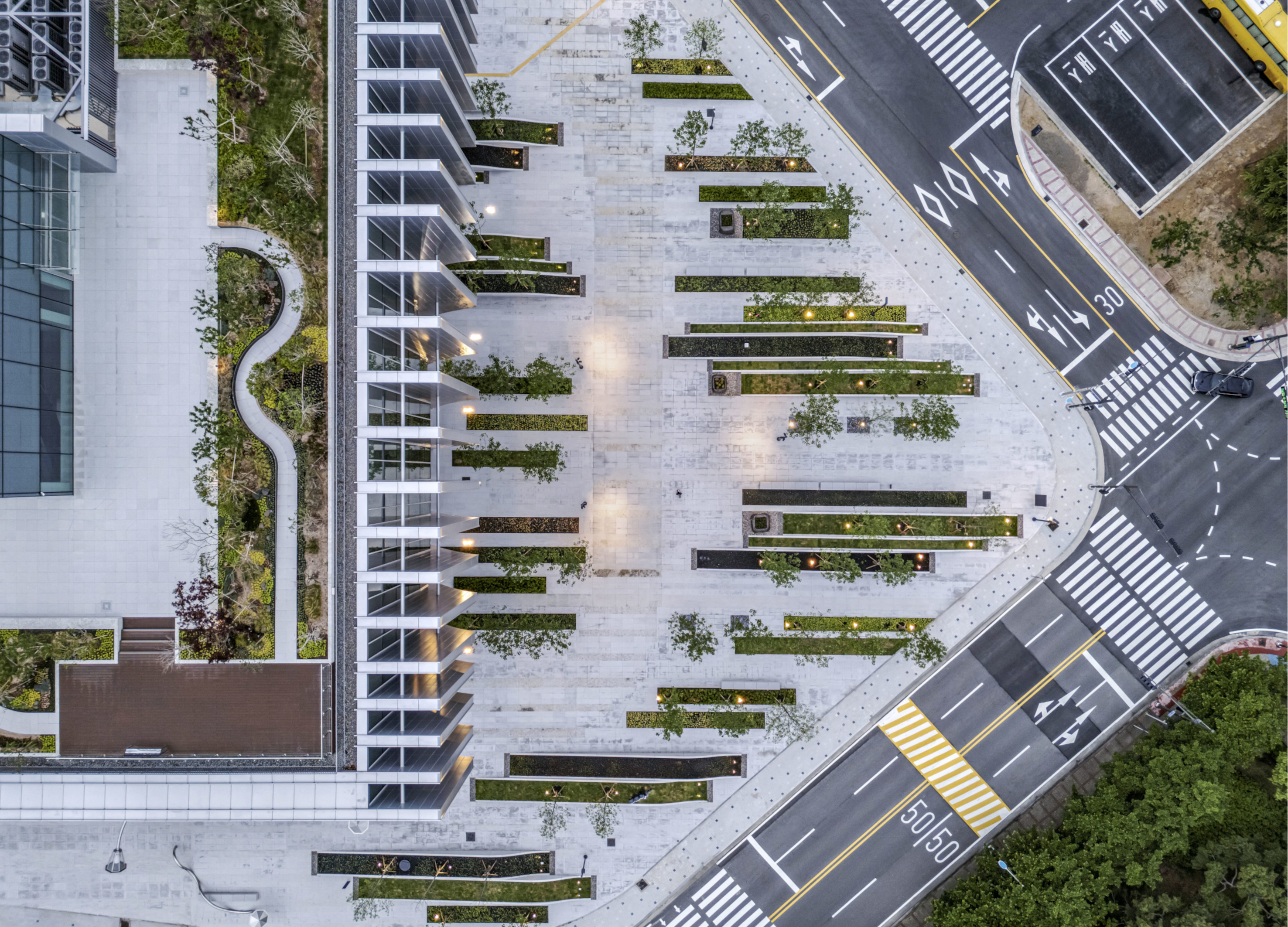 Park1538 Gwangyang is a newly created open space accompanying POSCO’s promotional and educational facilities, offering both everyday relaxation and event-oriented experiences. The Gallery Plaza features wave-shaped mounds that create a memorable landscape, while the open plaza provides unique interaction through smart light installations. The rooftop garden offers open views and regionally inspired planting that capture the charm of Gwangyang. Reflecting the city’s name, the courtyard forms a “wave of light,” becoming a sculptural plaza where natural waves seem to flow dynamically.