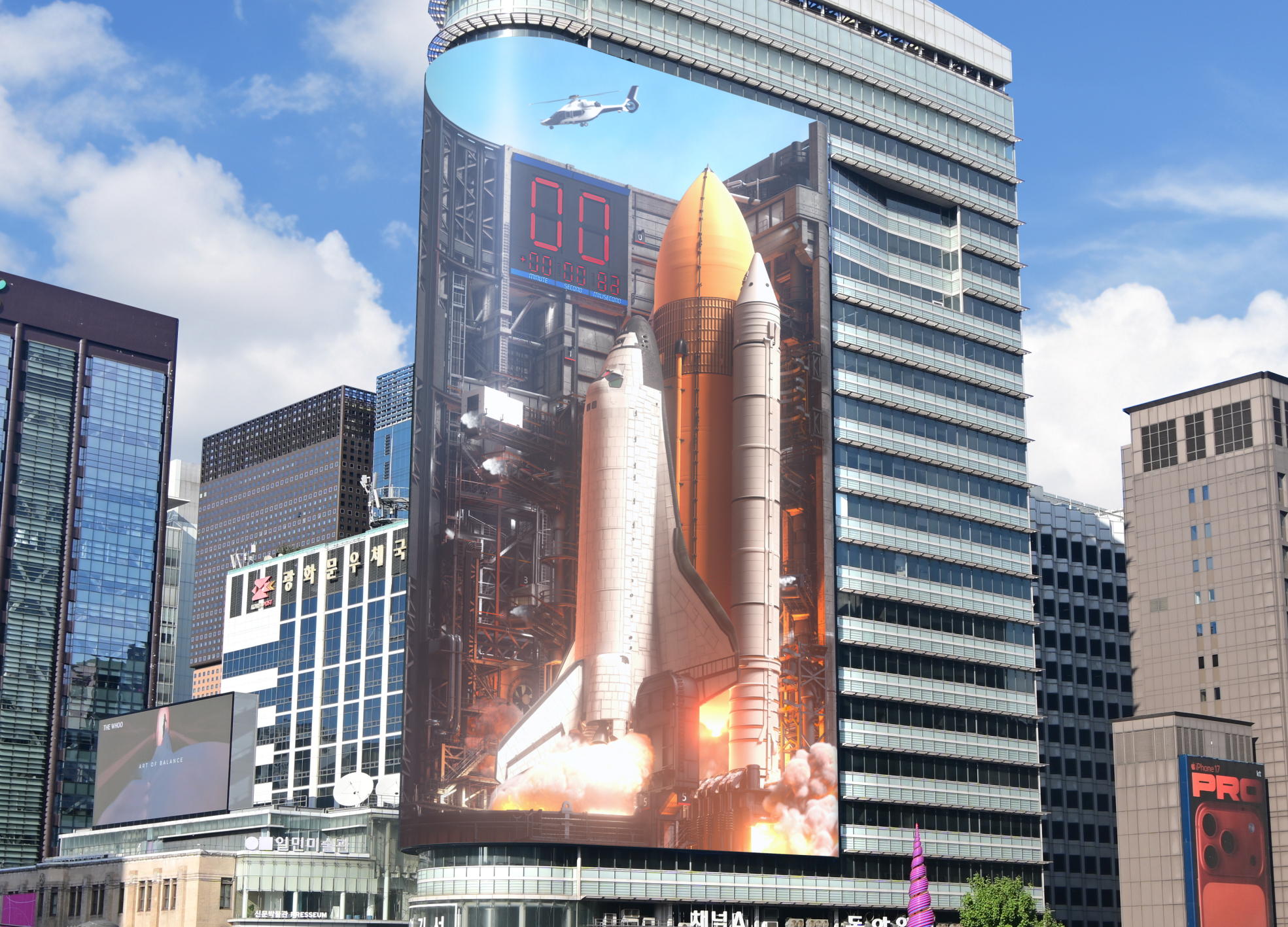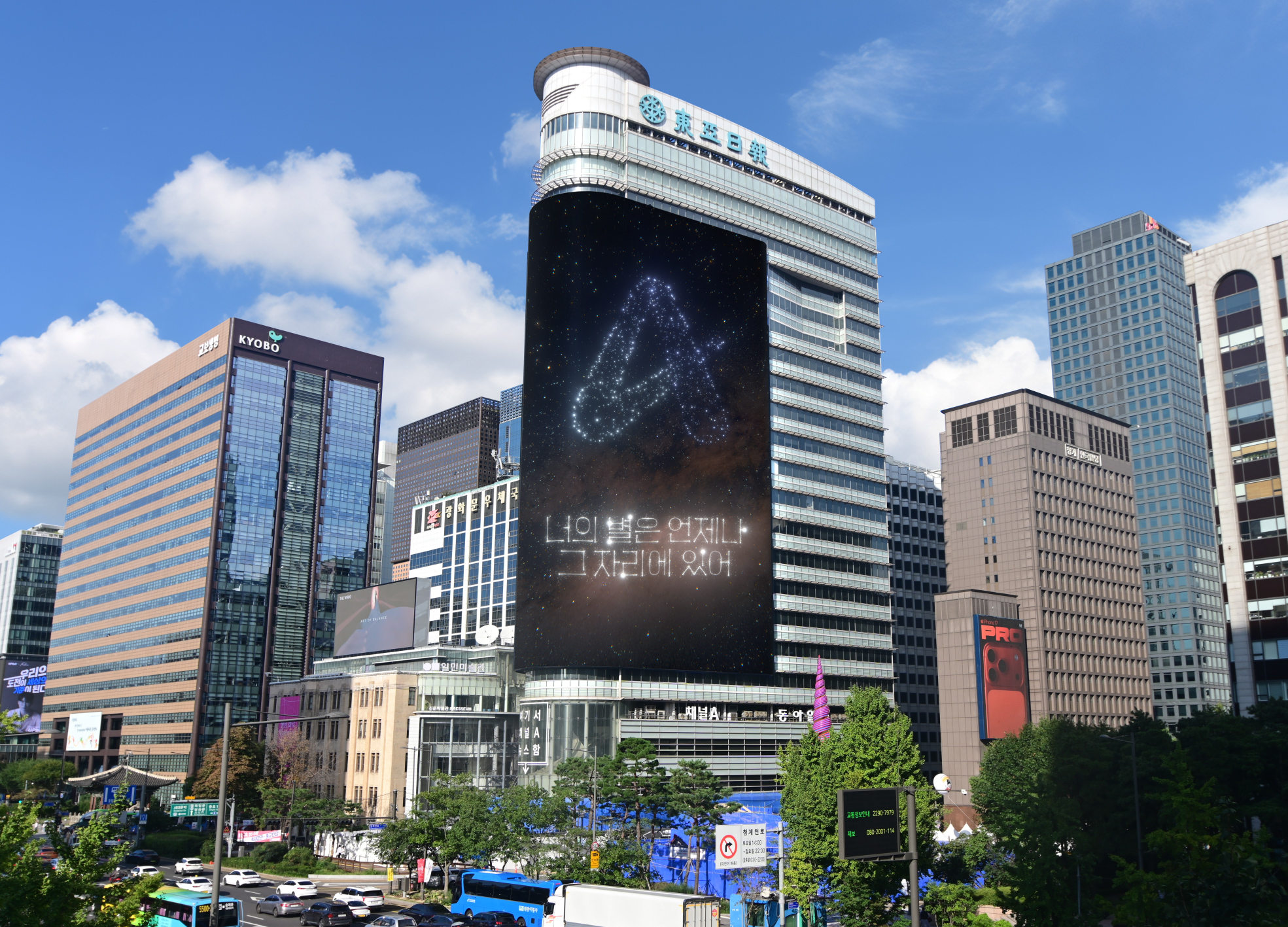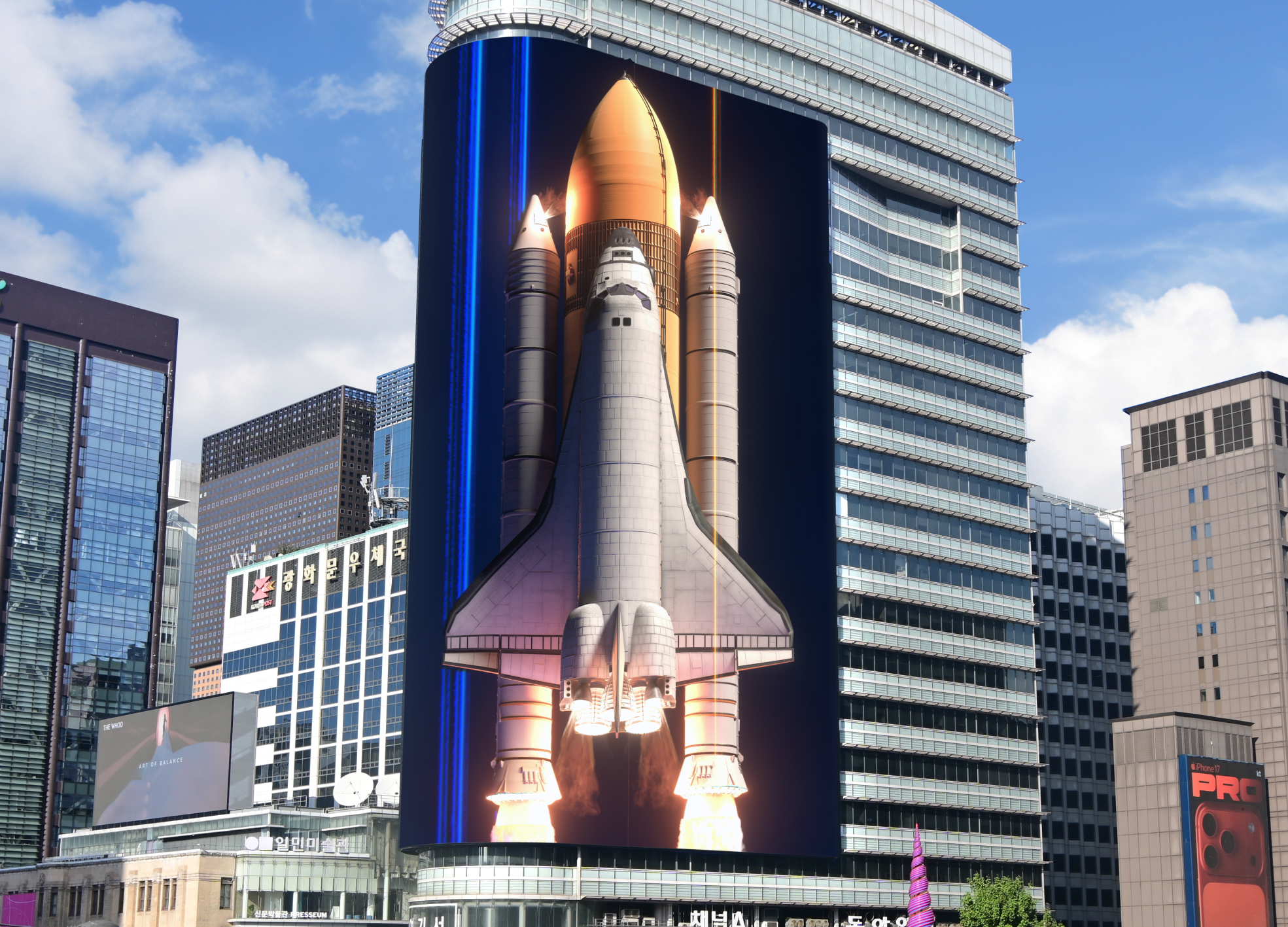 “Giving You the Universe” reimagines the rare moment of a rocket launch through LUUX, Korea’s largest curved digital signage in Gwanghwamun. The screen’s towering vertical form amplifies the rocket’s ascent for an immersive liftoff experience. Designed to align the trajectory with LUUX’s structure, the content delivers an overwhelming yet intimate moment. The closing phrase, “Your star is always there,” adds quiet emotional resonance. Blending technical precision, sculptural depth, and narrative warmth, the project highlights the expanded creative potential of K-culture media art.