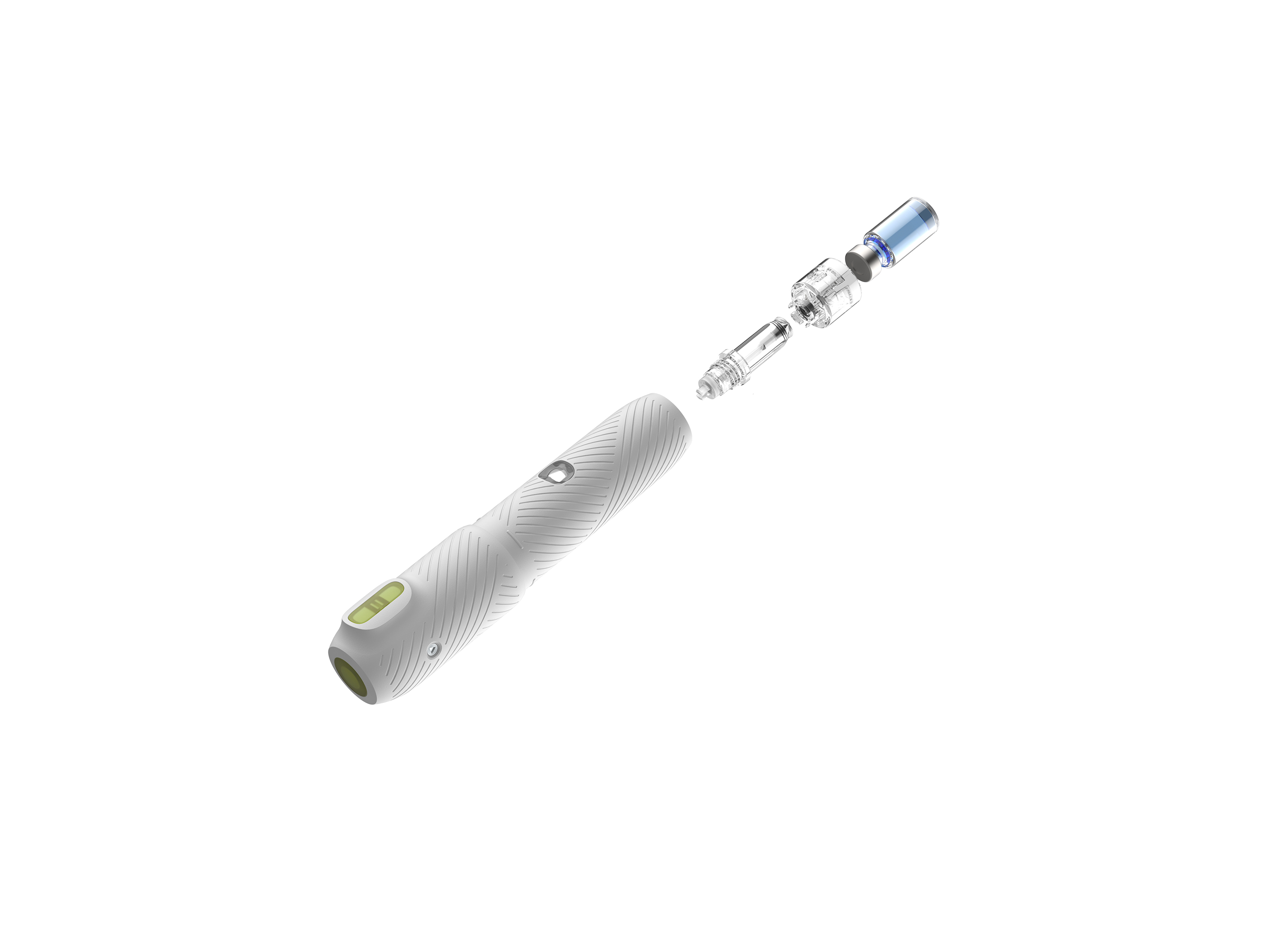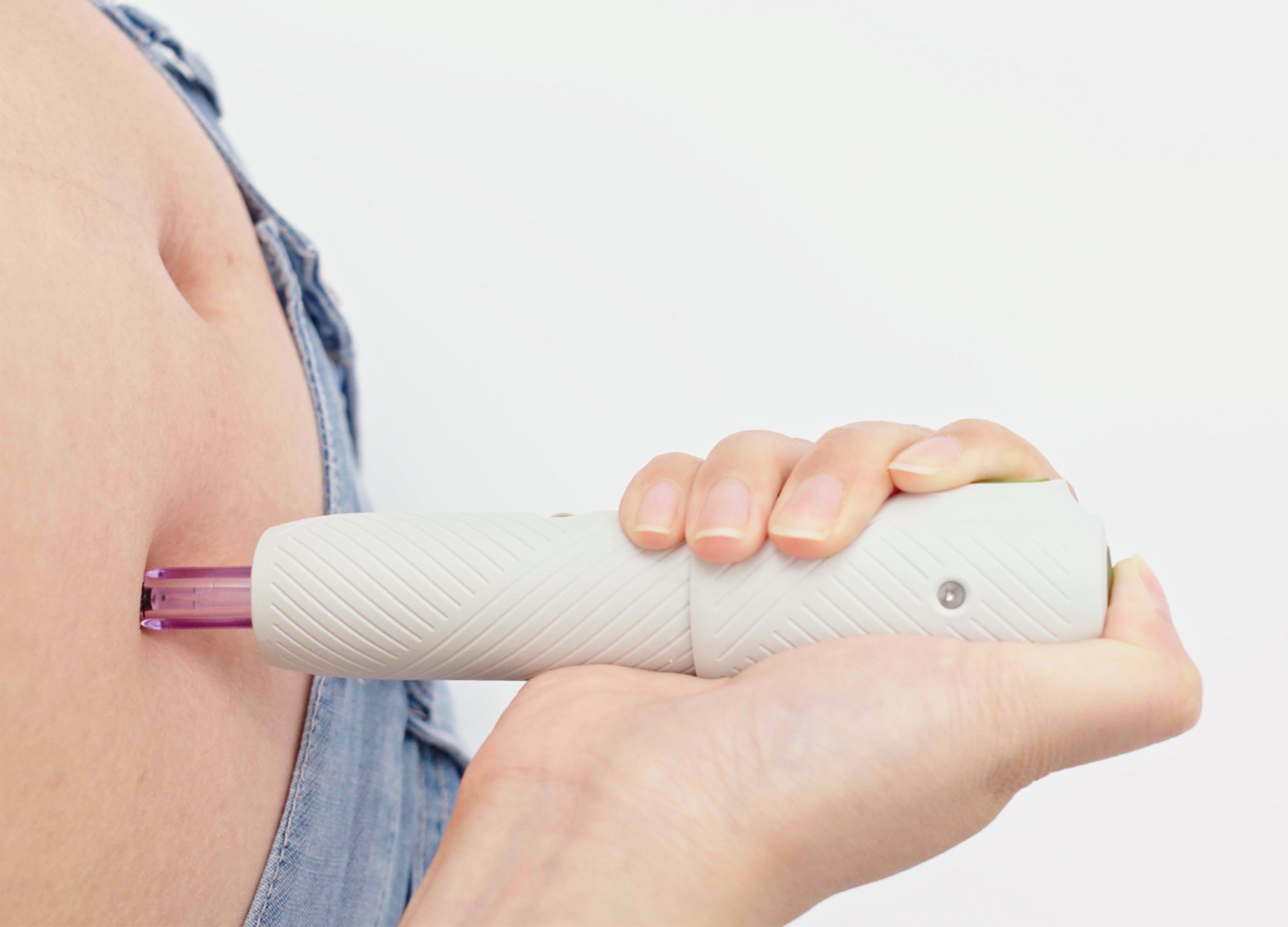 The P50 needle-free injector utilizes a pressure source to instantaneously propel the medication into a high-velocity jet that penetrates the skin to reach the injection site, minimizing injection discomfort. The P50 employs a dual-interlock mechanism linking the safety lock and injection button, effectively preventing accidental operation. The P50 features the energetic colors, breaking away from the rigid clinical impression of medical devices to infuse warmth and emotion into the product. Key components utilize translucent materials, further enhancing the product's light visual feel while clearly communicating its functional attributes.