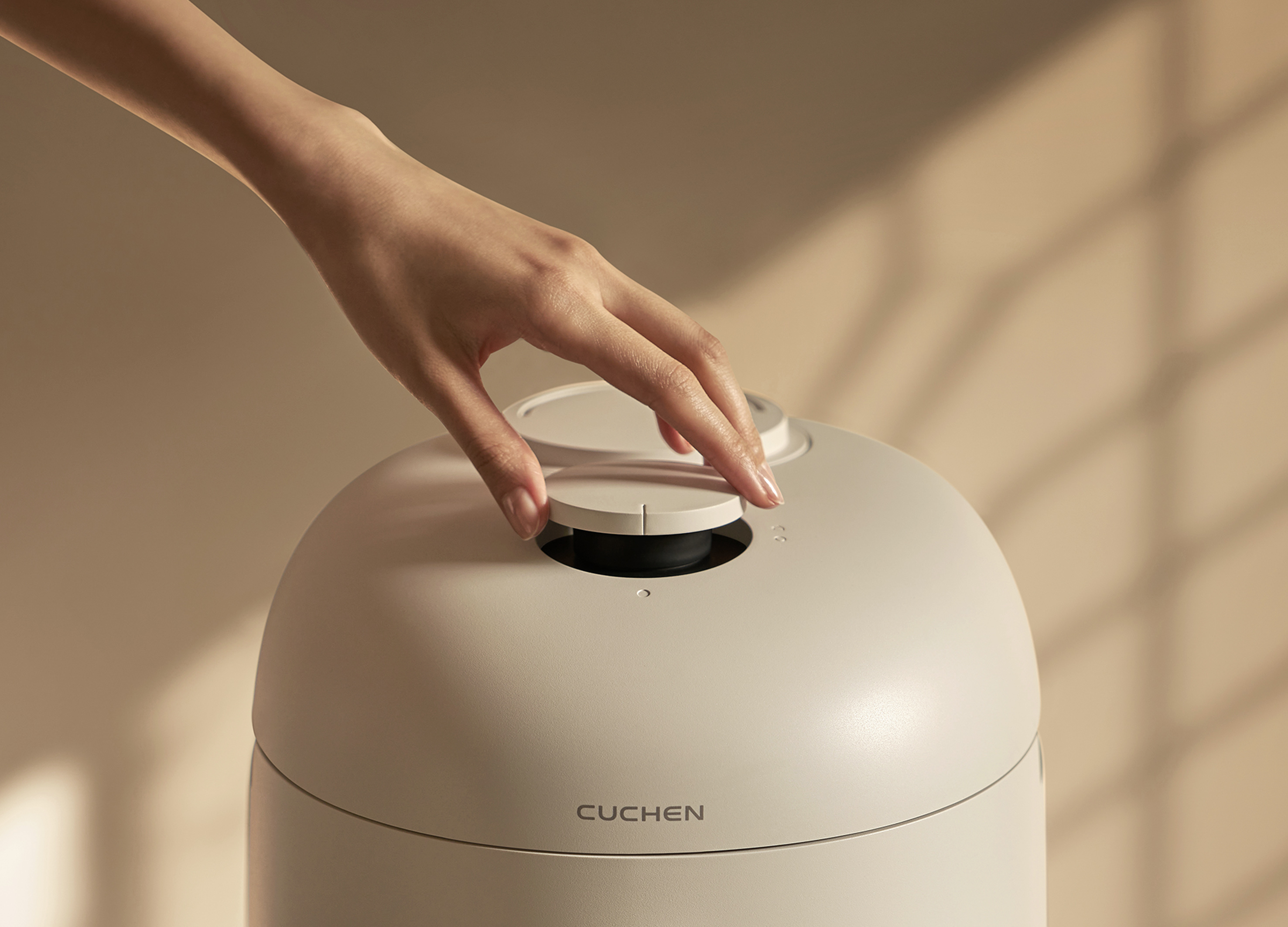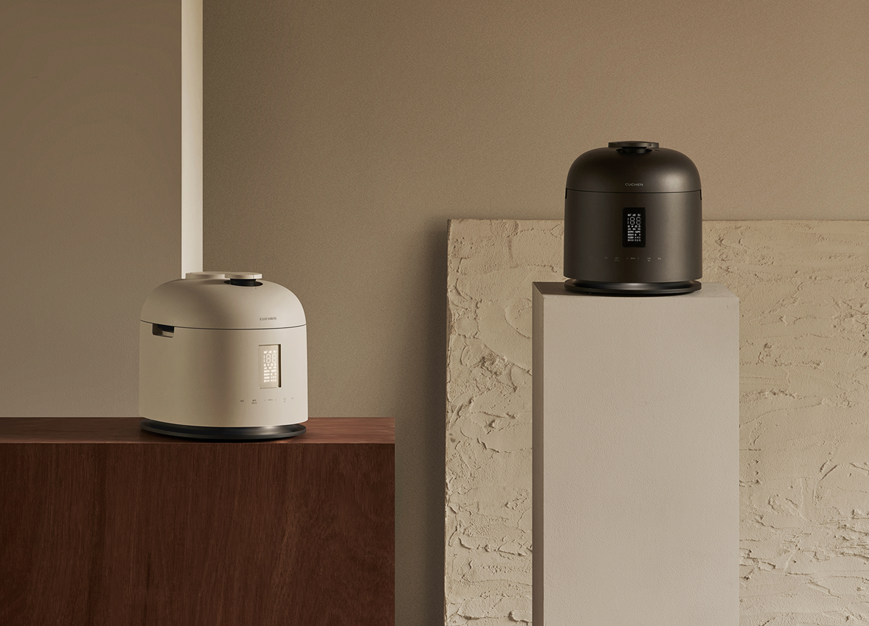 CUCHEN 123 is a premium IH pressure rice cooker combining advanced cooking performance with spatial versatility as an object and ambient light. Its globally competitive 2.2-atm pressure and 123°C technology enable fast, gentle cooking for diverse grains. Refined thermal algorithms drive 13 multigrain programs, while IoT connectivity analyzes patterns via an app to support health-focused meals. Hidden base lighting intuitively indicates operating and safety status, becoming ambient light when idle. A glossy-or-matte dual-model strategy, low-saturation CMF, and minimalist dome silhouette enable seamless integration as a refined object in space.