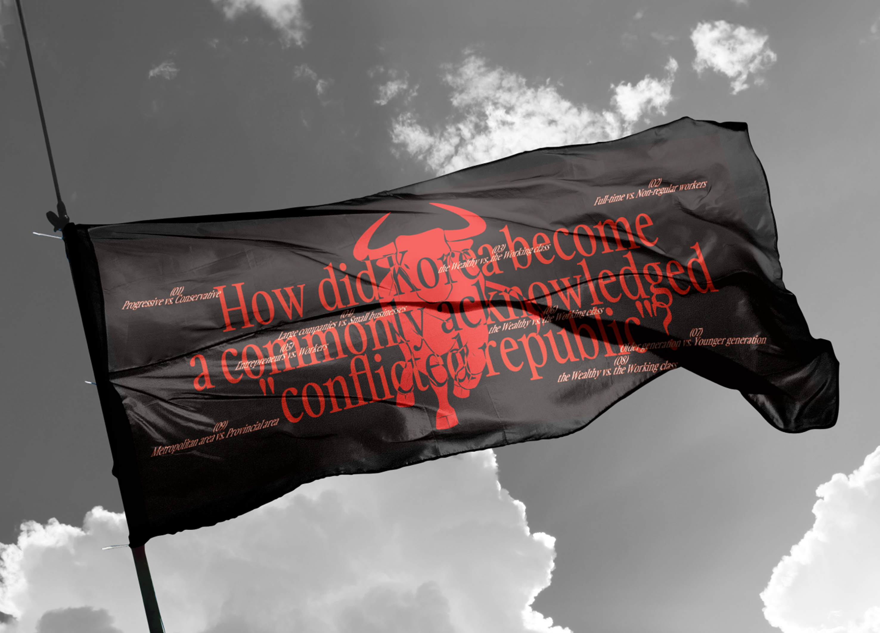 'VS: Science, Religion, and Us' explores the historical relationship between science and religion as a lens to examine the severity and social risks of conflict in contemporary society. Using the imagery of a bullfight the work visualizes their interaction: science appears as the bull, symbolizing its influence on social perceptions and established orders, while religion is represented as the matador, whose cape reflects responses to change. Beyond moments of conflict, the project considers instances of coexistence shaped through mutual understanding and adjustment, inviting reflection on conflict as a process of relationship and negotiation.