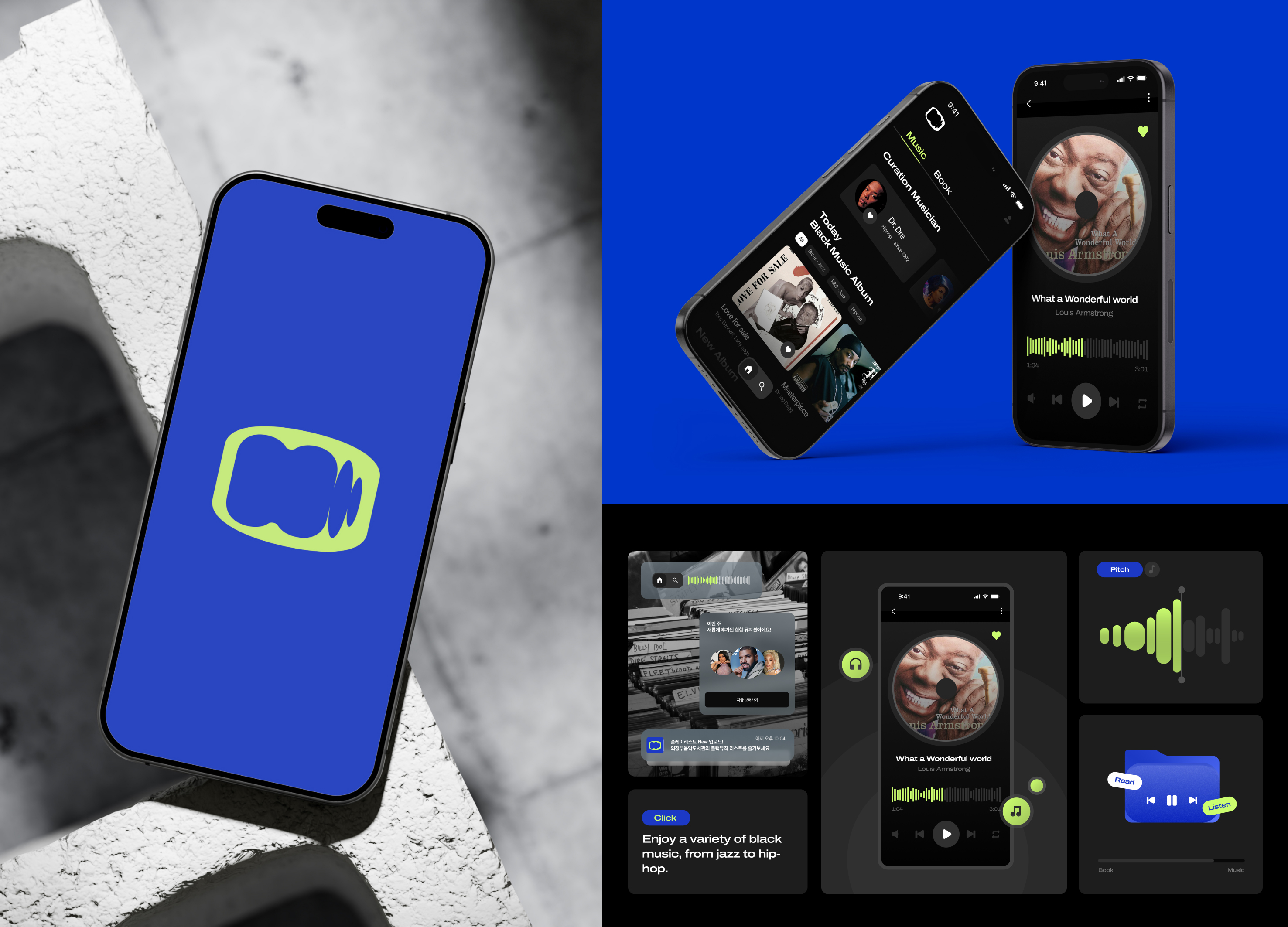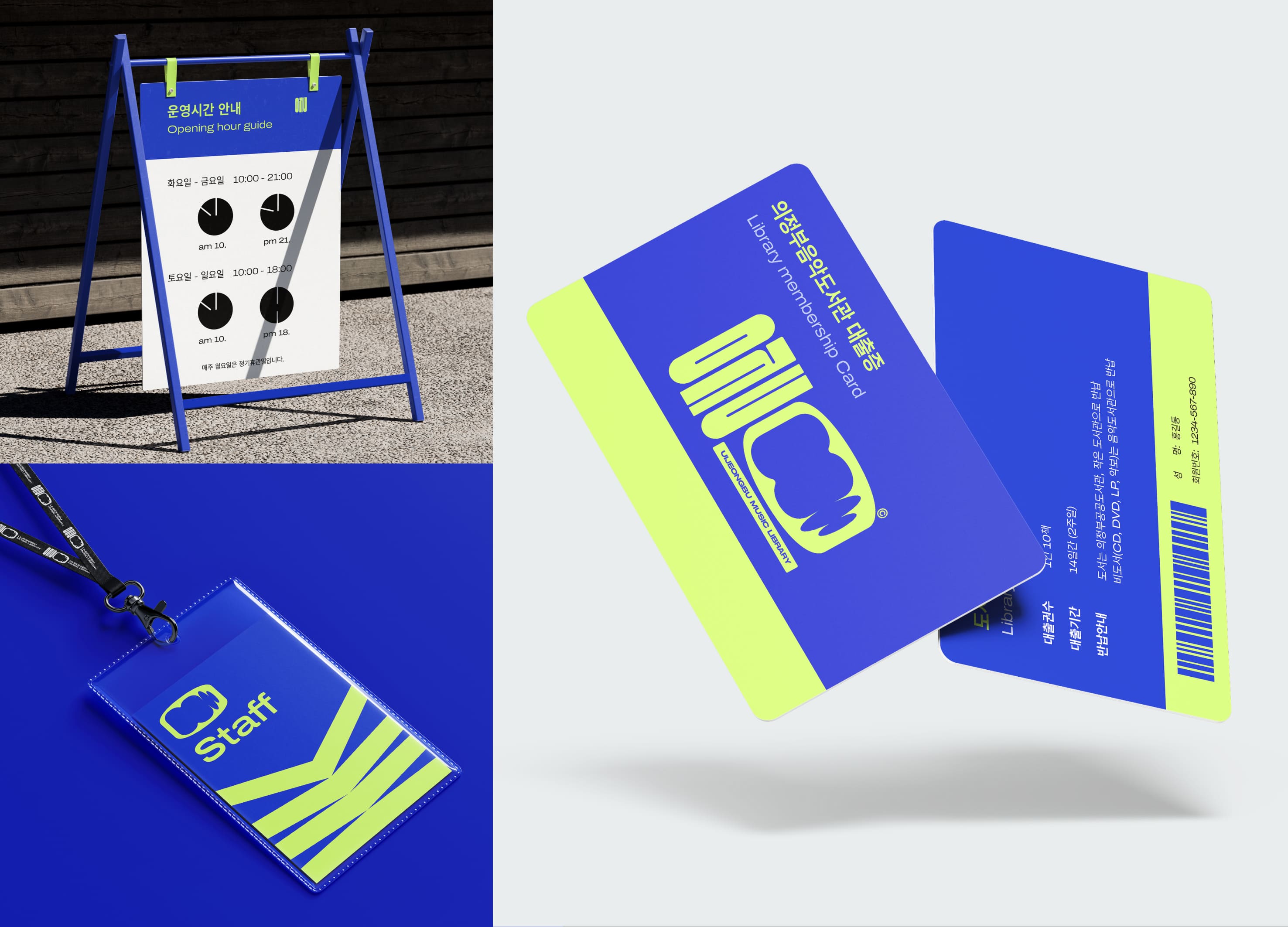 The Uijeongbu Music Library designed clear and intuitive infographics and spatial guides to create a welcoming environment for everyone who loves and enjoys music. Through research and competitor analysis, it defined its brand essence as a sensory daily life with music. The library aims to move beyond the traditional, formal image by offering immersive experiences that add musical inspiration to everyday life. Based on the concept of connecting books and music, its new identity embodies both flexibility and consistency, allowing the visual and verbal systems to adapt seamlessly across diverse applications.
