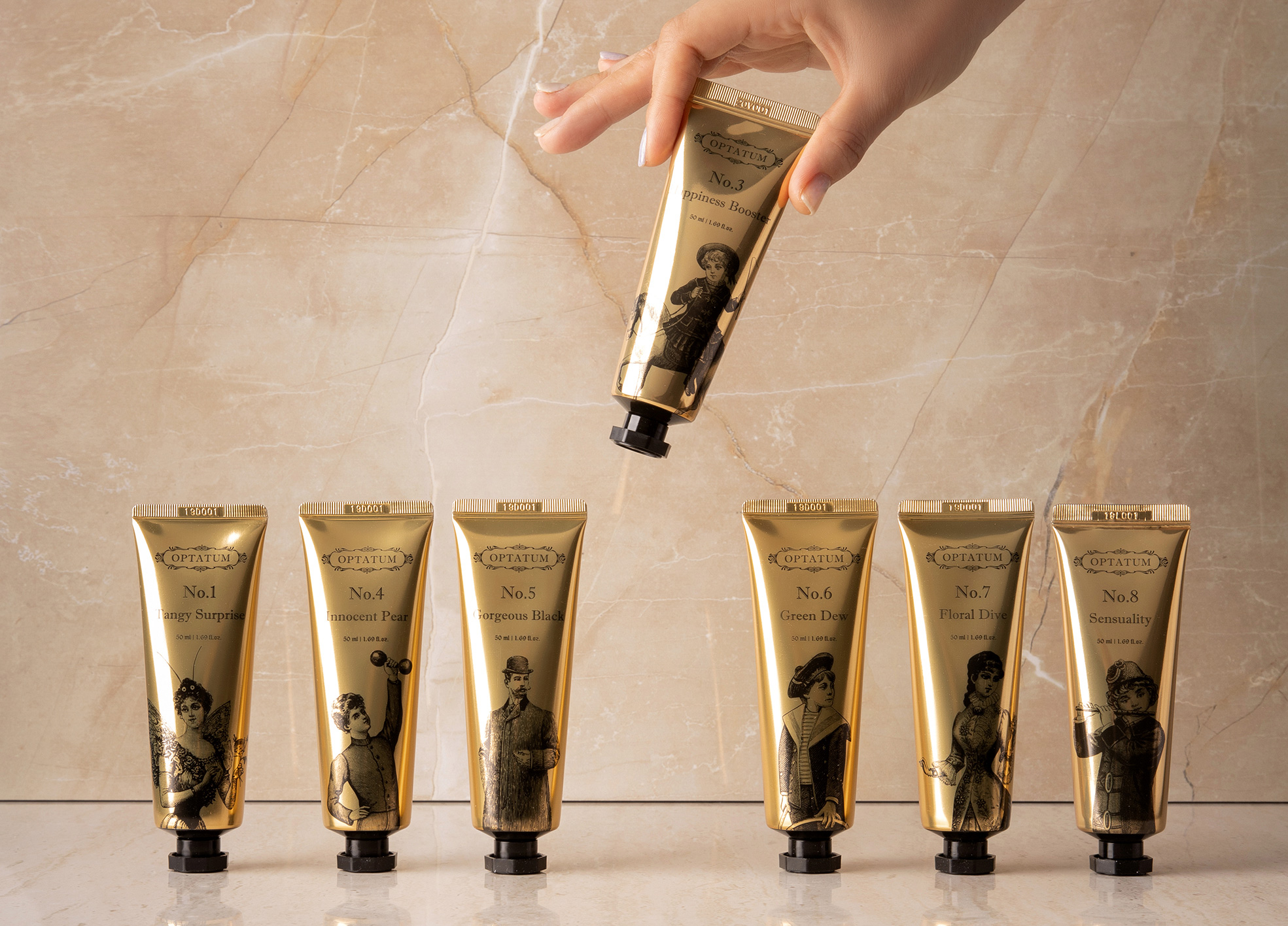 OPTATUM is a fragrance brand launched in 2016. This project defined the full brand concept including positioning, logo, product and packaging design, label systems, and merchandise planning. The goal was to shape a refined identity that reflects a small luxury sensibility. The visual direction uses vintage-inspired elements and warm tones to evoke elegance and timeless charm. Packaging balances modern simplicity with classic expression, and additional merchandise expands brand presence. The result is a cohesive identity that resonates with those seeking understated luxury.